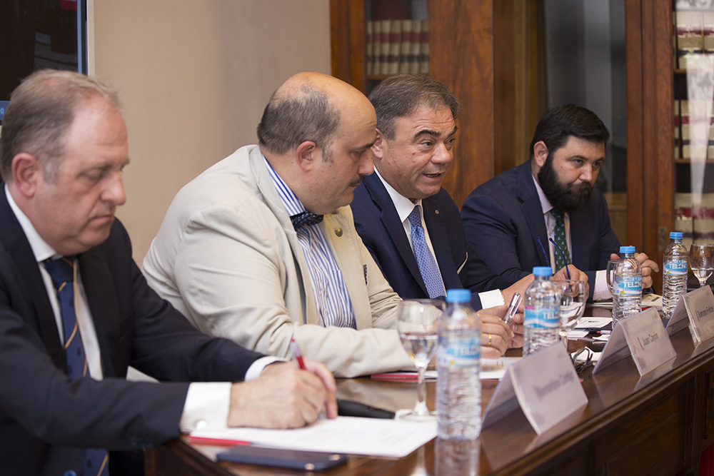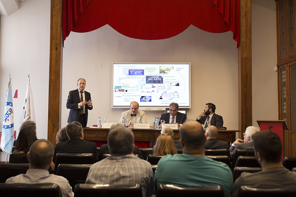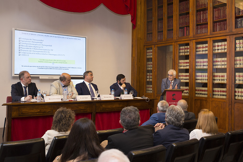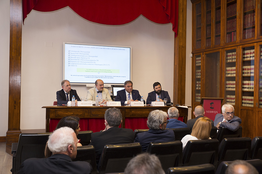 En el marco de este convenio, la Universidad organizó el viernes 22 de junio una mesa redonda sobre seguridad en Europa en la que participaron Juan Cayón, rector de la Universidad, Romano Felice, secretario general de la Fundación, Bernardino Cortijo, director del Máster de Ciberdelincuencia, y Fernando Huete, especialista en ciberseguridad de la Guardia Civil.