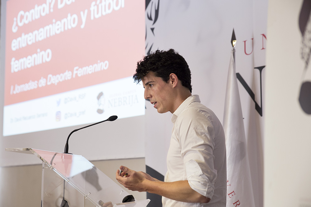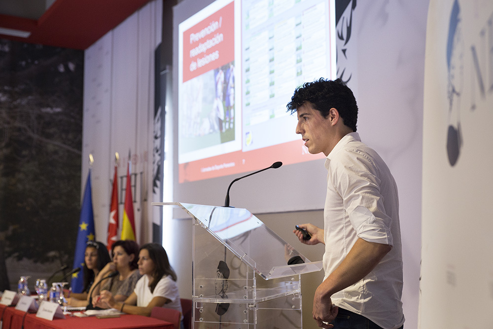 Las futbolistas Jennifer Santiago y Cristina Sánchez, junto a David Recuenco, director del grado y fisioterapeuta de las jugadoras del Rayo Vallecano, explicaron la necesidad de conocer las diferencias físicas en los cuerpos y en la forma de jugar entre el fútbol femenino y masculino para saber qué necesidades tienen las jugadoras específicamente para poder mejorar su rendimiento, la prevención de lesiones y las formas de entrenamiento óptimas para su juego. Las futbolistas se quejaron de la falta de profesionalidad en las infraestructuras en las que ellas trabajan: “los campos en los que jugamos y entrenamos no son iguales y eso influye en los resultados y las lesiones” explicó Sánchez.