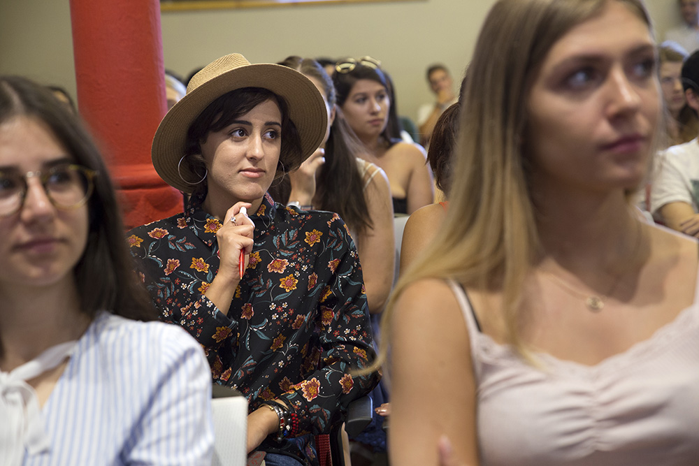David de la Fuente e Isabel Ruíz, del Servicio de Deportes, han mostrado a los alumnos la gran oferta disponible en Nebrija para participar en diferentes disciplinas deportivas y en los Clubs de la Universidad como el de Voluntariado, Aventura o Viajes. Ambos han asegurado que participar en estas actividades les ayudará a integrarse con otros alumnos, tanto internacionales como nacionales, y sacar mayor provecho a la experiencia.