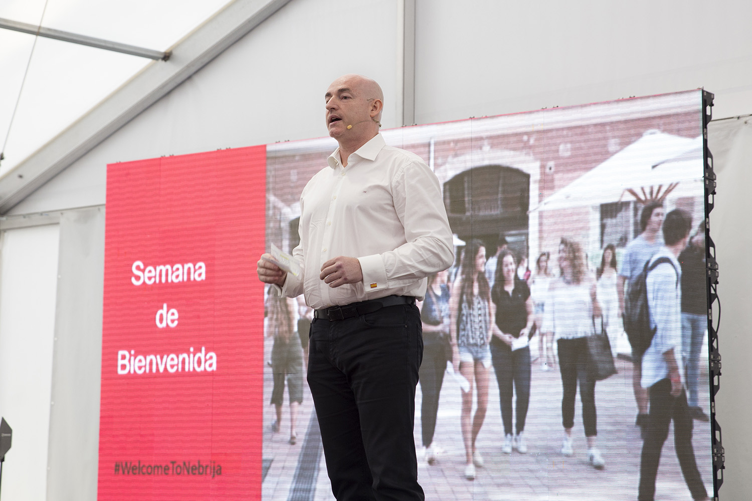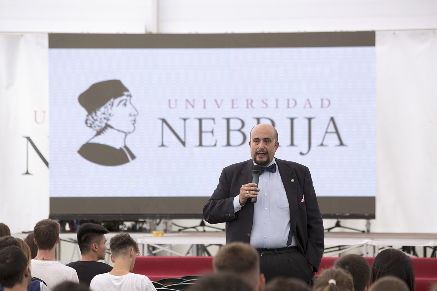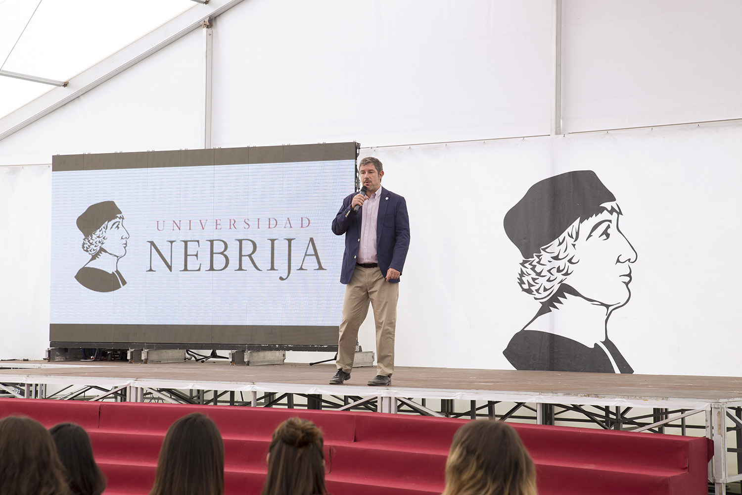 “La universidad es el principio de vuestra etapa adulta. Os lo vais a pasar muy bien y es una etapa que recordaréis con mucho cariño, pero también tendréis que estudiar. Estáis aquí para formaros, para crecer a nivel académico y personal, y para convertiros en los mejores profesionales. Esperamos mucho de vosotros”. Con estas palabras les recibió Joaquín Espallargas, vicepresidente del Consejo Rector de la Universidad, quien les aconsejó que aprovecharán al máximo lo que la Universidad Nebrija les podía ofrecer: excelencia académica, transversalidad, internacionalización y empleabilidad. “Dentro de 15 años, os acordareis con orgullo de Nebrija, eso es lo que queremos y eso es lo que buscaremos durante estos cuatro años”, afirmó Espallargas.