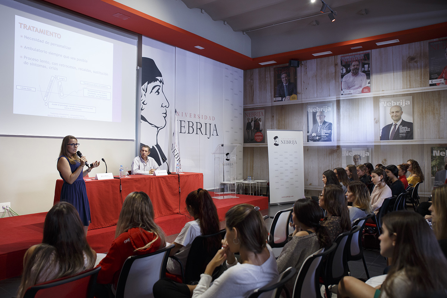 La psicóloga Mónica Moreno, de la Clínica En Madrid Psicólogos, inauguró la actividad del Grado de Psicología en el curso 2018-2019 con una conferencia sobre los trastornos alimentarios, en la que sobre la complejidad de este tipo de trastornos y todos aspectos que hay que tener en cuenta a la hora de tratarlos.