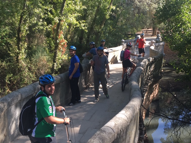 Tras abandonar la Casa de Campo, los alumnos continuaron por la vía ciclista de Madrid Río, contemplando el Puente del Rey, Puente Segovia, Estadio Vicente Calderón y Puente de Toledo.