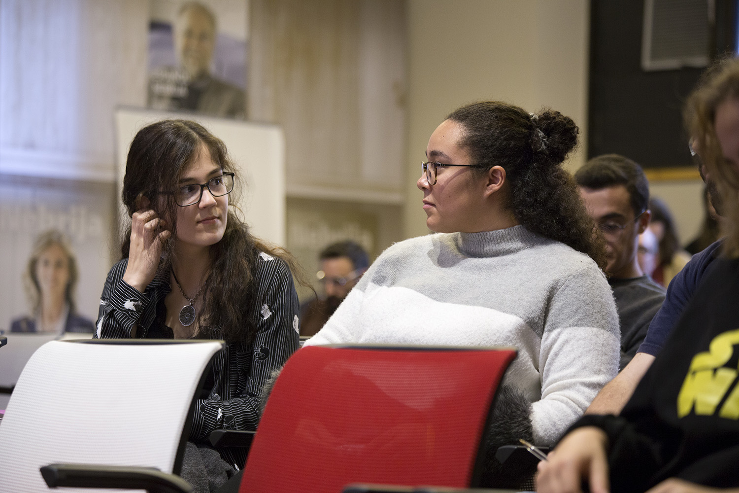 Los alumnos de la Universidad han podido acudir a ver la película en primicia y posteriormente han tenido un encuentro con Andrea Jaurrieta y con Iván Luis, productor de la cinta. La película Ana de día ha sido un proyecto que ha llevado ocho años poner en pie y que se ha financiado gracias a un proceso “muy duro” de crowdfunding. Su directora ha explicado que la película “es una manera de contar la necesidad de huida, que siempre ha estado presente en mis cortometrajes anteriores, y el mundo sórdido de la noche, las pensiones, los cabarets y todo el entorno que les rodea”.