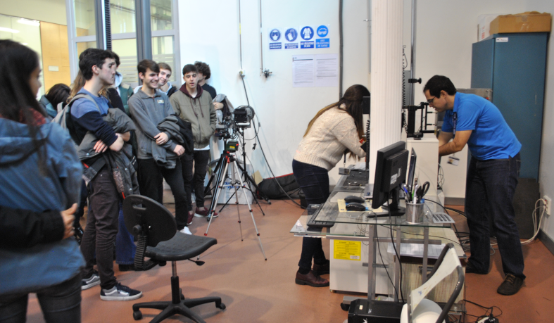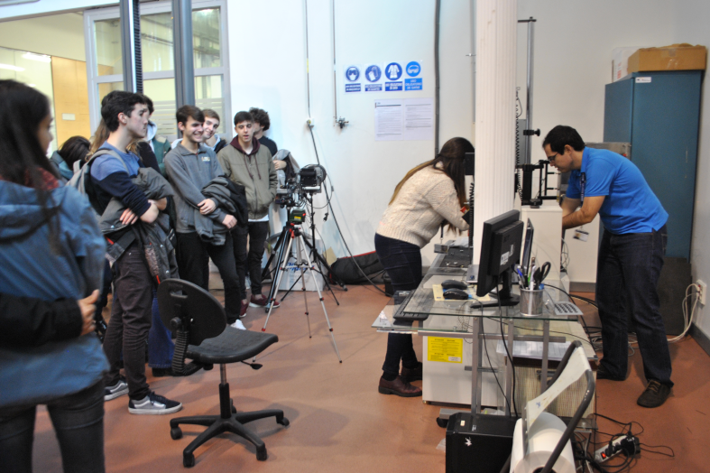 Aprovechando que la visita se enmarcó dentro de la XVIII Semana de la Ciencia y la Innovación, los asistentes tuvieron la oportunidad de conocer un segundo proyecto de manos de Mario Rueda y María Azzura, investigadores predoctorales, centrados en la creación de materiales compuestos. Realizaron ensayos mecánicos reales con piezas de material compuesto en el laboratorio del Instituto y finalmente analizaron los resultados obtenidos en las diferentes pruebas.