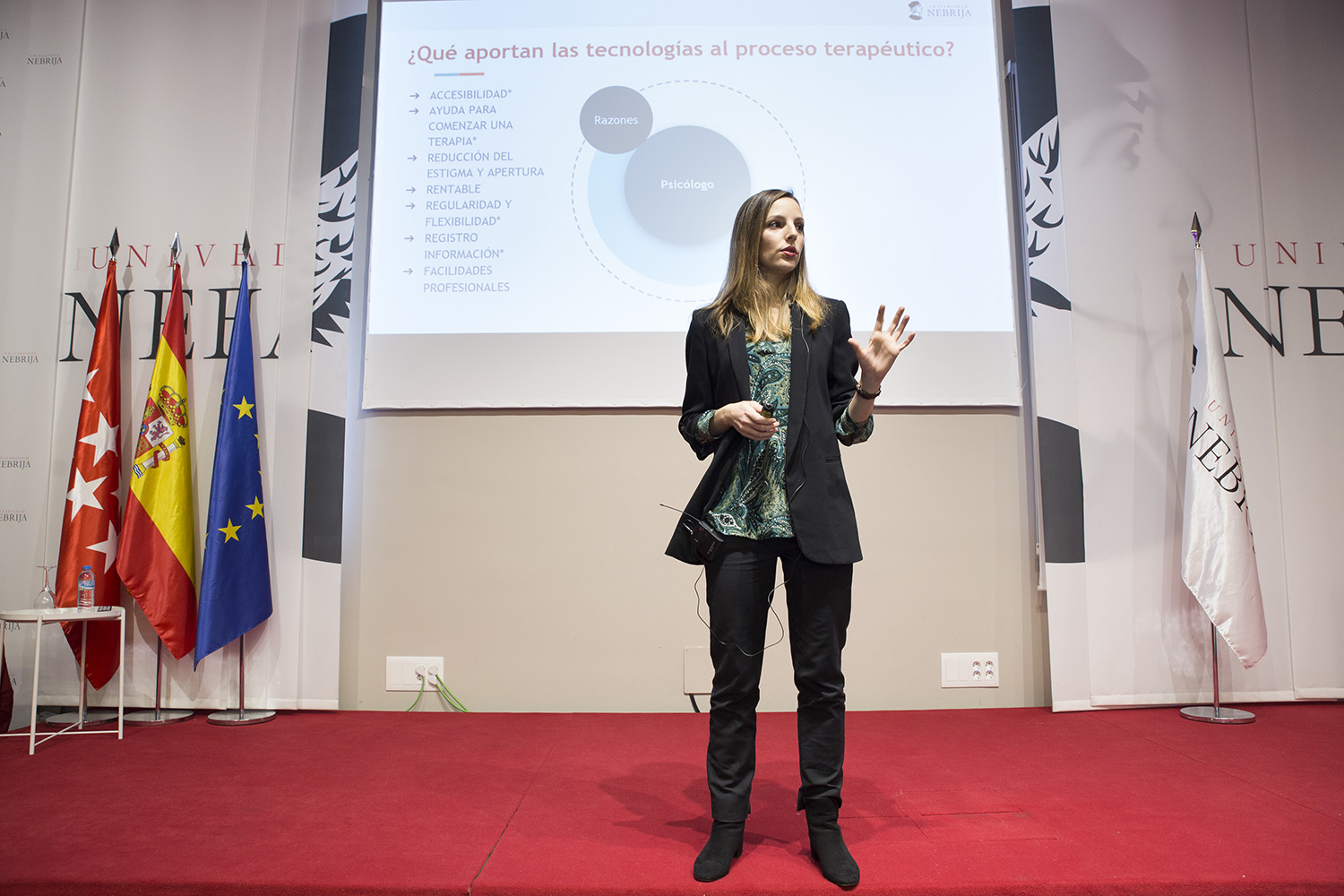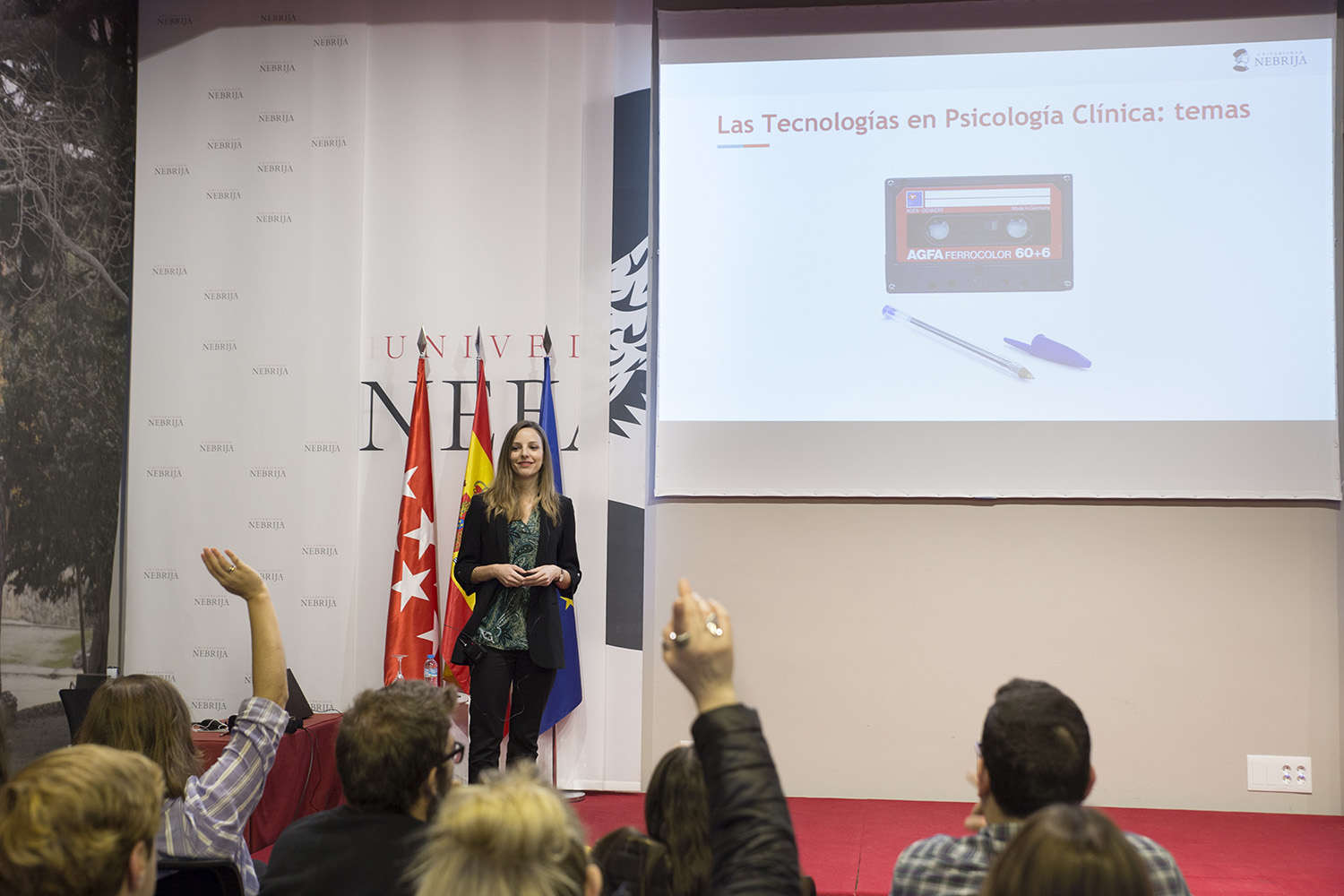De la Torre habló sobre las ventajas del uso de las tecnologías en las terapias psicológicas, que permiten, por ejemplo, una mayor flexibilidad en horarios y accesibilidad a las sesiones a personas que de otra manera no podrían asistir. “Pero, sin duda, la mayor ventaja de las tecnologías es el registro de información”, destacó psicóloga, que explicó cómo los datos que aportan las nuevas tecnologías (las horas de sueño, el tiempo dedicado al ejercicio físico, el ritmo cardíaco…) permiten a los psicólogos hacer un mayor seguimiento de sus pacientes.