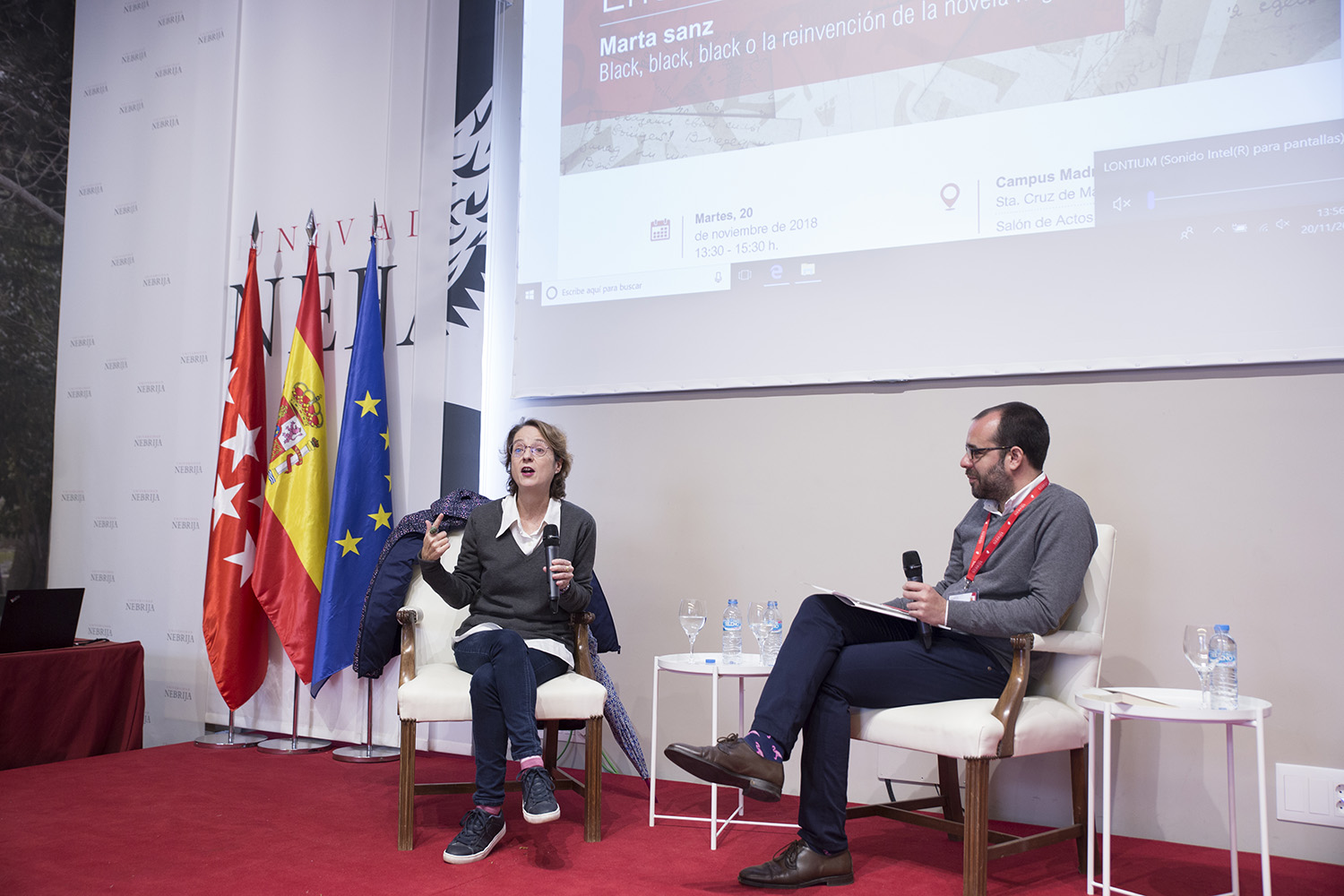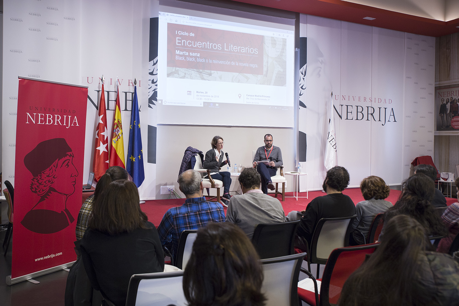 La Facultad de Comunicación y Artes inició el I Ciclo de Encuentros Literarios con un encuentro con la escritora Marta Sanz, antigua profesora de la Universidad Nebrija, que desgranó los entresijos de Black, black, black, su primera novela negra y una de las más celebradas.