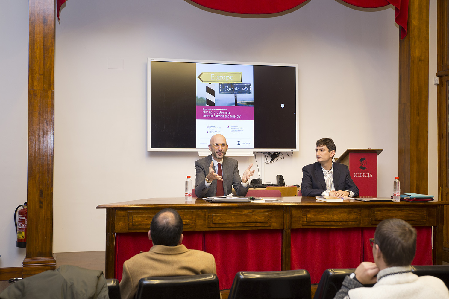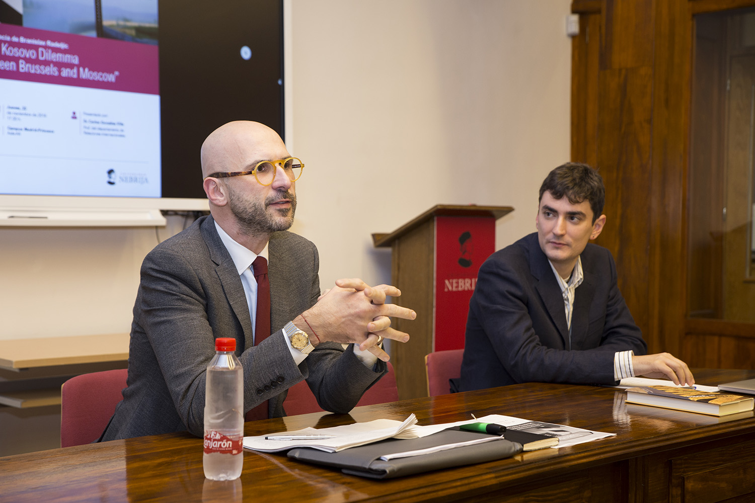 Radeljic habló sobre la compleja posición de Kosovo y su estatus internacional, centrando su charla en la evolución de la política europea y rusa hacia este territorio, ubicado en el sureste de Europa. Explicó los diferentes factores políticos, culturales e ideológicos que han contribuido, a lo largo de los últimos treinta años, a articular la política de las grandes potencias en esta región de los Balcanes, “la más pobre de la antigua Yugoslavia”.