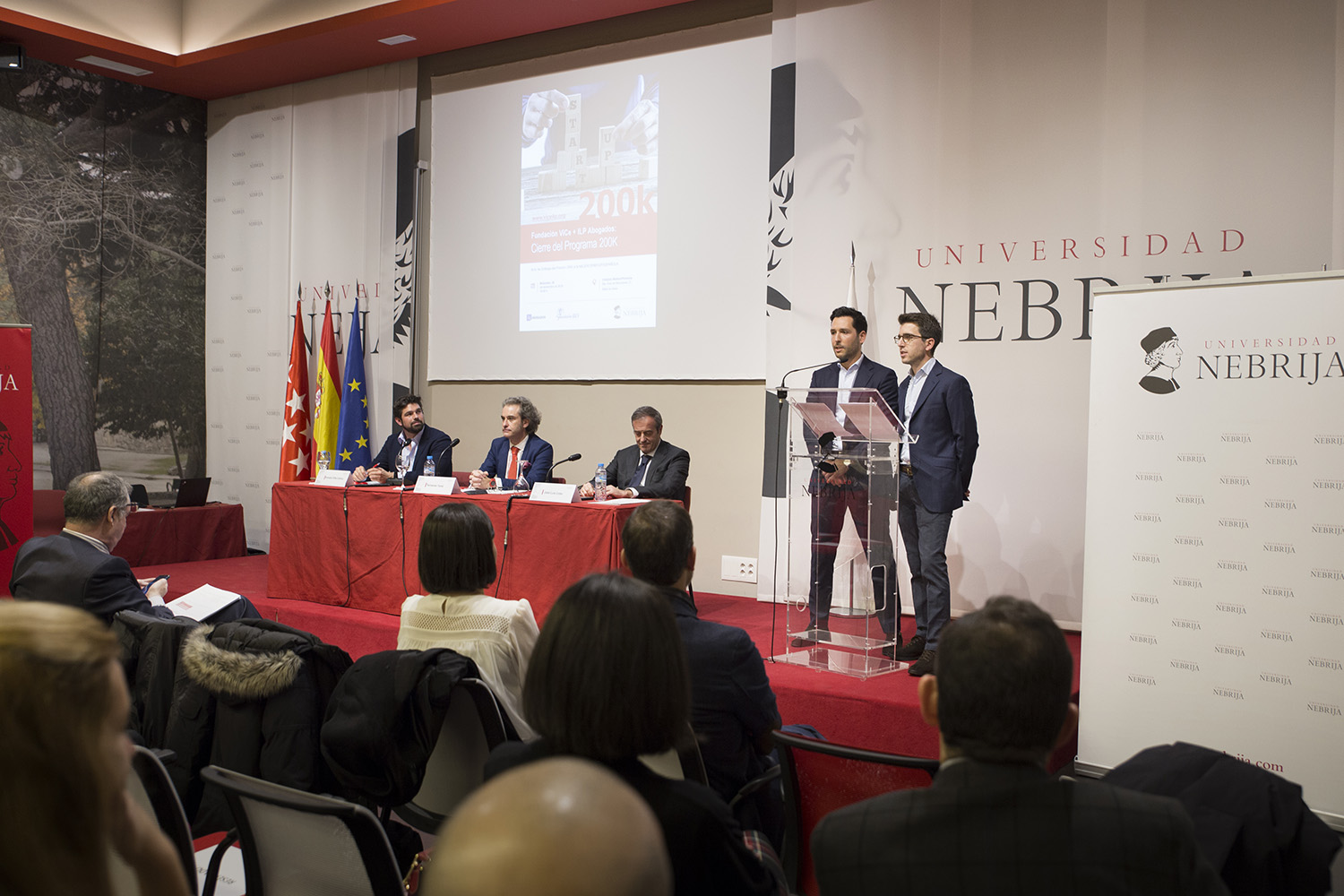La Fundación Villa-Cellino junto a ILP Abogados llevó a cabo la entrega del Premio 200k a la mejor start-up española. La Universidad Nebrija acogió este acto porque entre sus valores se encuentra el fomento del espíritu emprendedor en la formación de profesionales que puedan poner en práctica y llevar a cabo lo aprendido en las aulas mediante el Grado de Creación y Administración de Empresas, los MBAs y el Club de Emprendedores, según explicó Fernando Tomé, decano de la Facultad de Ciencias Sociales.