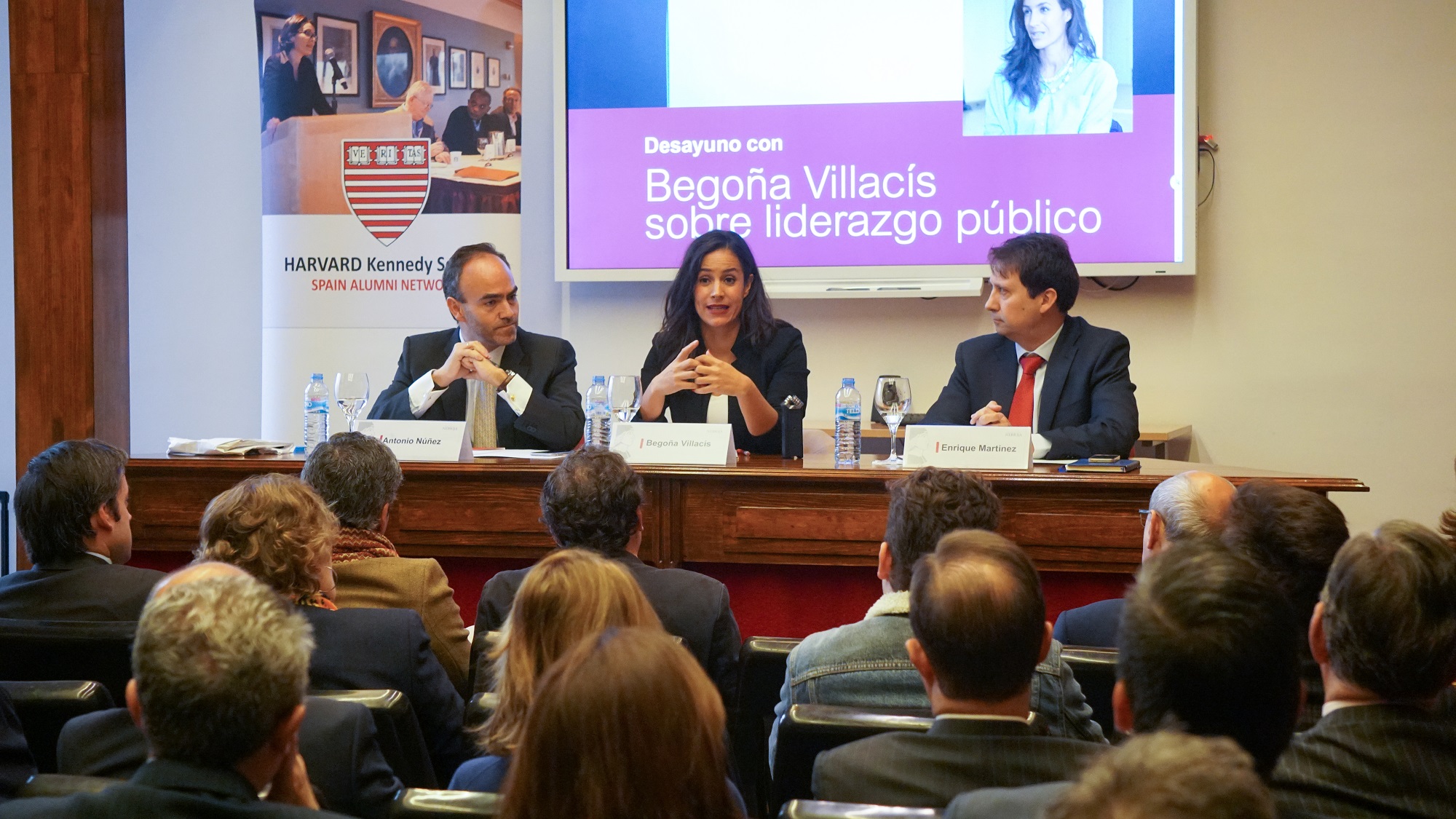 Antonio Núñez, presidente de la Asociación de Antiguos Alumnos de Harvard Kennedy School en España y socio director de Parangon Partners, ha inaugurado el encuentro explicando el camino coincidente entre la ponencia de Begoña Villacís y la misión de la Harvard Kennedy School “que fomenta el liderazgo público mediante la formación continua de sus antiguos alumnos, el networking y la promoción de las buenas prácticas entre lo público y lo privado”. Enrique Martínez, miembro de la junta directiva de la Harvard Kennedy School, ha explicado que “Ciudadanos tiene mensajes sobre liderazgo público muy interesantes de conocer y compartir” y los discursos de Begoña Villacís llaman siempre a que, detrás de cada decision, haya datos e informaciones correctas, “eso en la Harvard Kennedy School nos interesa mucho”,