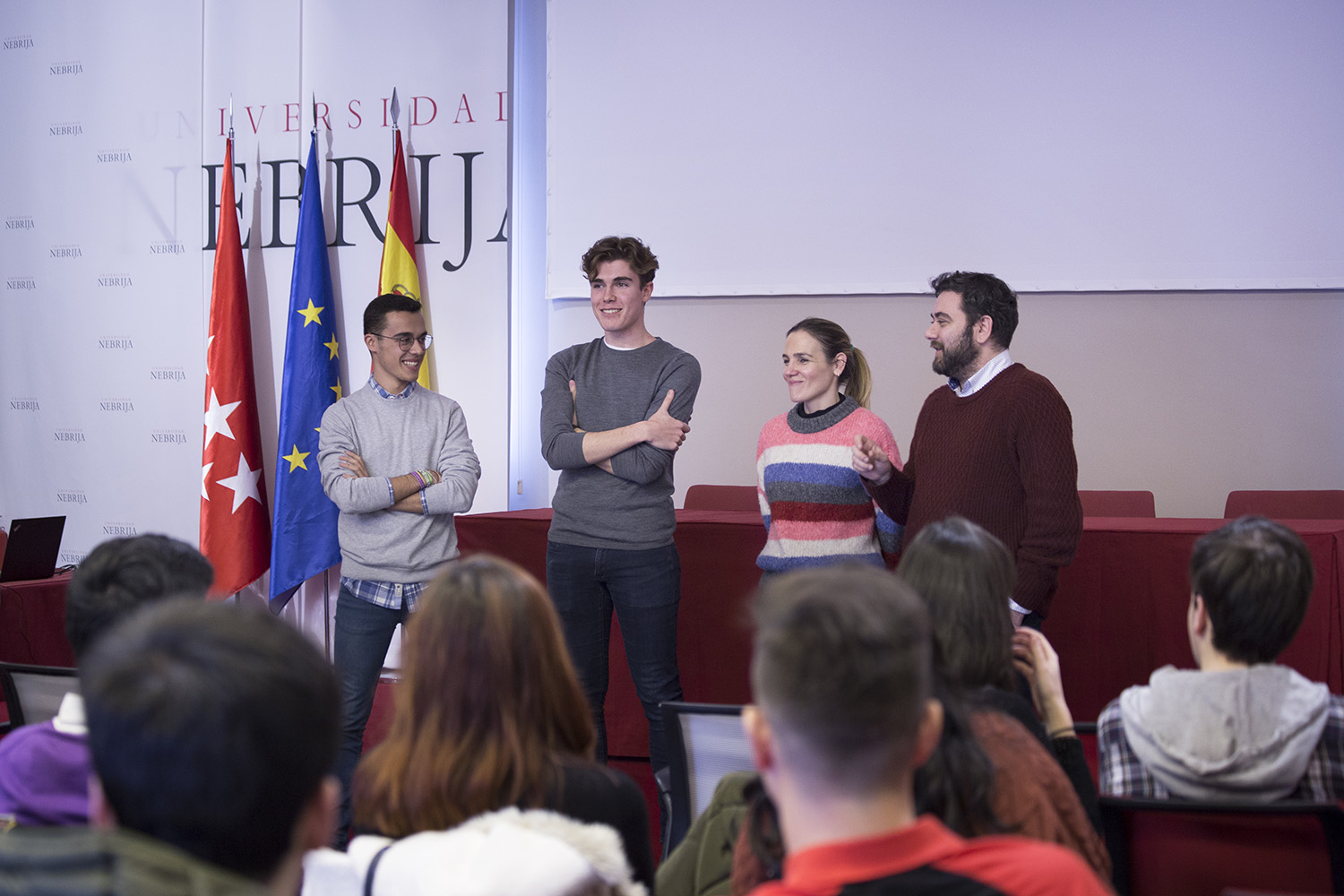 Los profesores Nicolás Grijalba y Rocío Gago dieron paso a la proyección en primicia de la película mostrándose orgullosos por ver plasmado en la práctica lo que se enseña en las aulas, “no sólo la teoría, sino las ganas, el valor y el interés por hacer cine”.