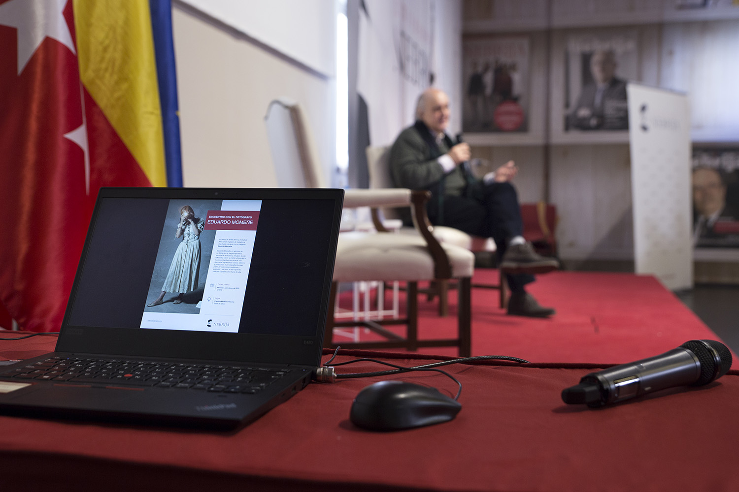 Para Eduardo Momeñe el reto de la fotografía es “darle un sentido” y tiene que utilizar el propio lenguaje de la fotografía. “Un fotógrafo hace fotografías para tener papeles que hablen de ti, tiene que lidiar con un mundo caótico a su alrededor y luego ordenarlo en la fotografía”, dijo Momeñe reivindicando la fotografía como un medio artístico, un lenguaje. Para el aclamado fotógrafo “la fotografía está subordinada la palabra, al texto que la acompaña, para mí el maridaje fotografía-texto es un gran maridaje”.