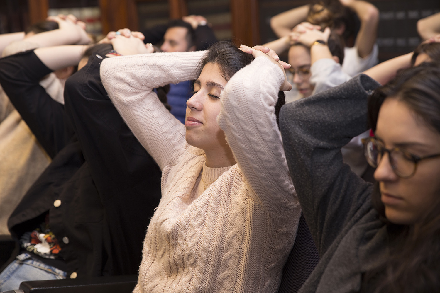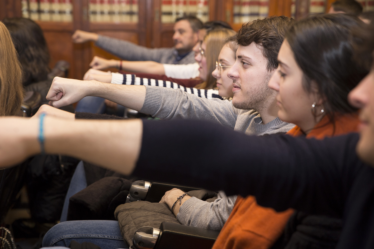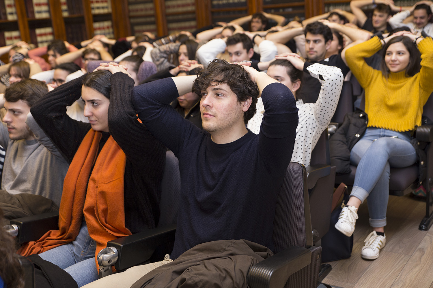Tras la primera parte de la charla, José Elías Fernández puso en práctica con los alumnos algunas de las técnicas para mostrarles cómo inducir a la hipnosis y lo que se pueden realizar con ella.