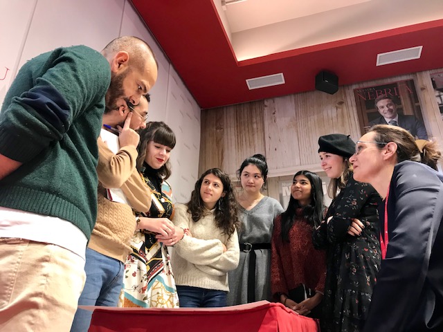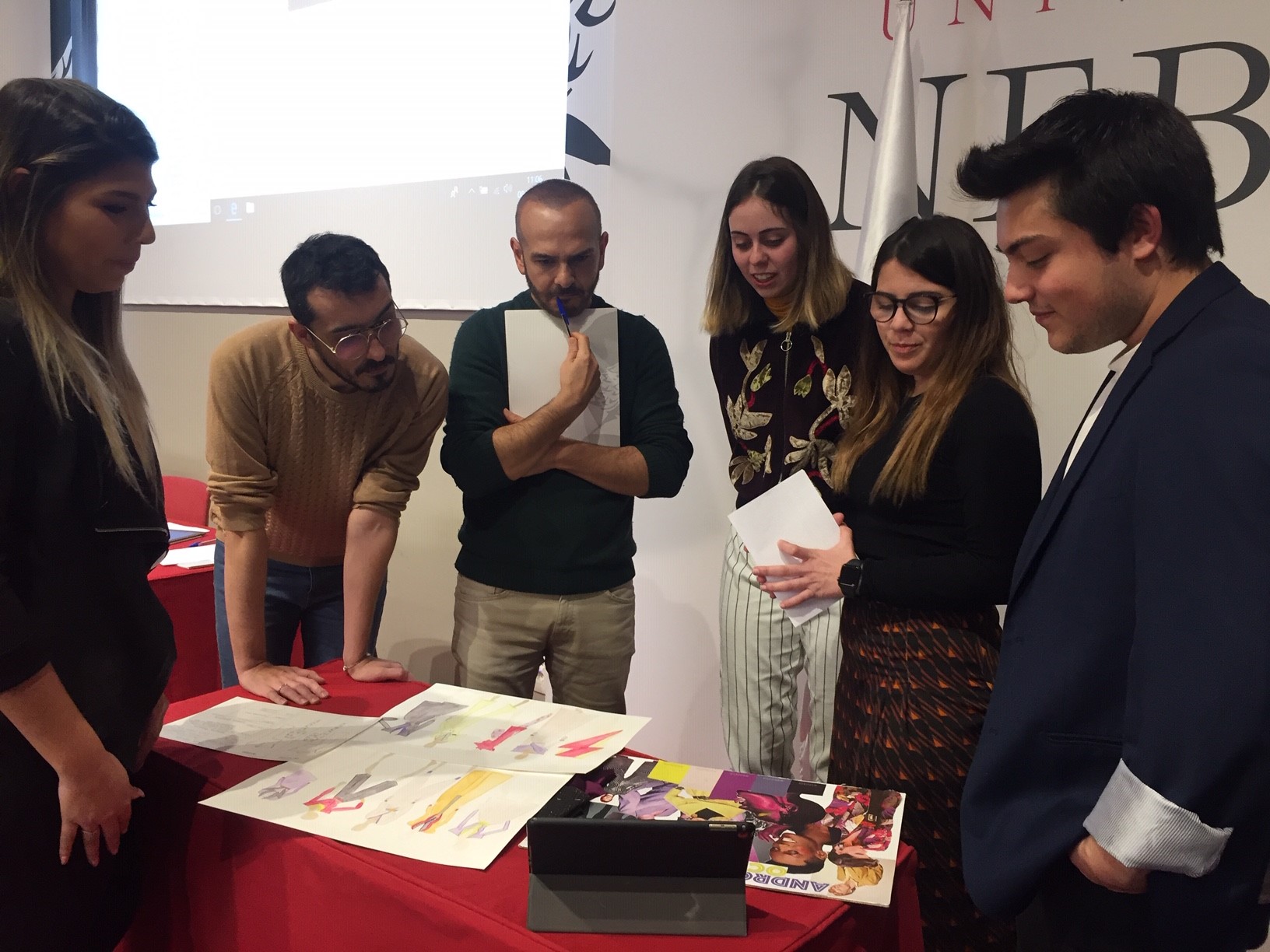 Cada uno de los equipos presentó su moodboard de inspiración, los diez figurines de la colección, una propuesta de tejidos, patrones….Cada una de las propuestas fue revisada con entusiasmo y detenimiento por parte de los dos directores creativos y nuestros alumnos pudieron disfrutar y aprender de su experiencia y consejos.