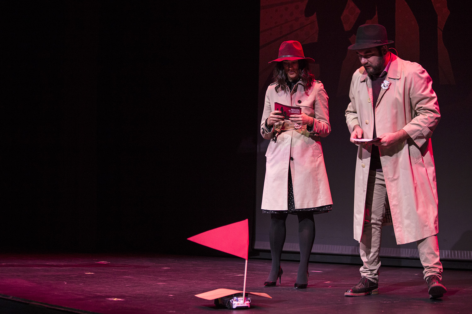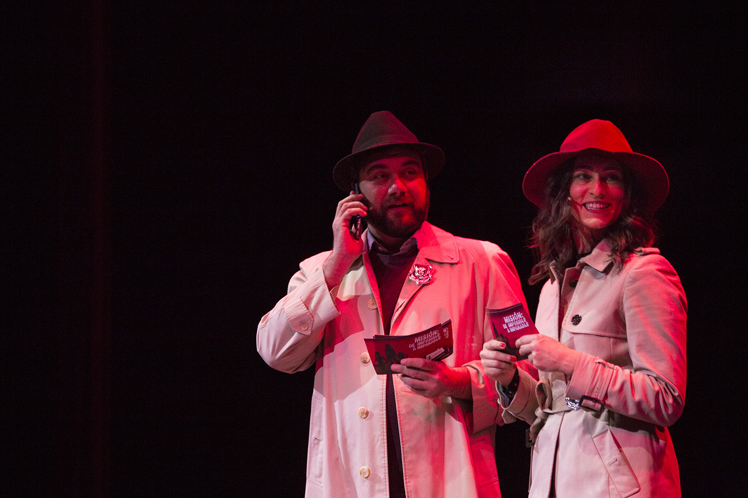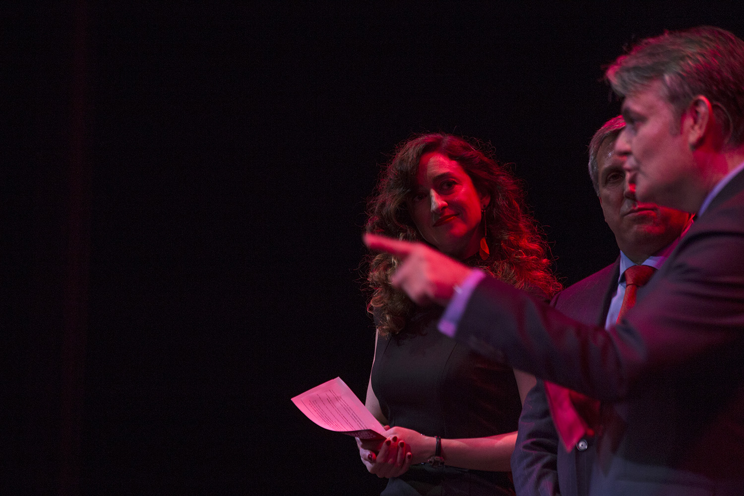Los encargados de conducir el acto este año fueron Alicia de la Peña, directora de la Oficina de Proyección Profesional e Internacional y Nicolás Grijalba, director del Grado de Comunicación Audiovisual, quienes, siguiendo una historia detectivesca y con toques de humor, fueron guiando a los asistentes a lo largo del descubrimiento de los cuatro pilares fundamentales de la Universidad Nebrija: empleabilidad, exigencia académica, transversalidad e internacionalización.