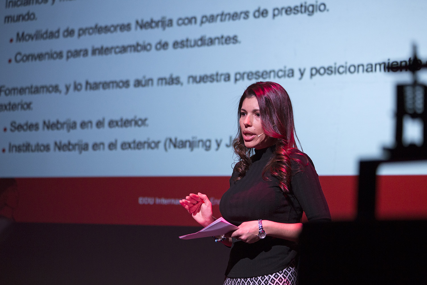 Soraya Lozano, directora de Desarrollo Universitario Internacional y Javier Sedano, director de Desarrollo Universitario Nacional, hablaron del crecimiento que ha supuesto para la Universidad el gran aumento de alumnos en el último año. Además, este aumento ha venido acompañado de mejores notas por parte de los aspirantes que eligen la Universidad Nebrija para cursar sus estudios. Soraya Lozano explicó que entre los alumnos internacionales, la Universidad cuenta con 78 nacionalidades diferentes y un 10% de los alumnos presenciales son internacionales. No sólo son alumnos que pasan un periodo corto de tiempo en la Universidad, sino que también ha aumentado el número de alumnos internacionales que cursan todos los años del grado o el máster completo en la Universidad Nebrija, lo que hace que sea la segunda universidad española en internacionalización.