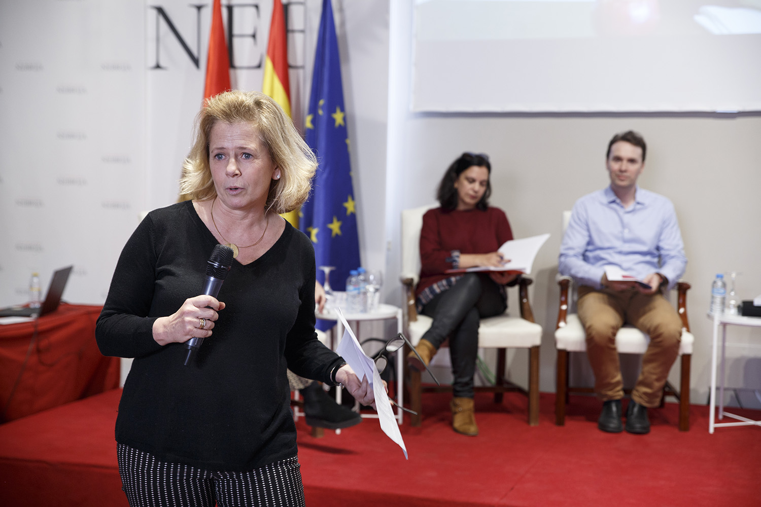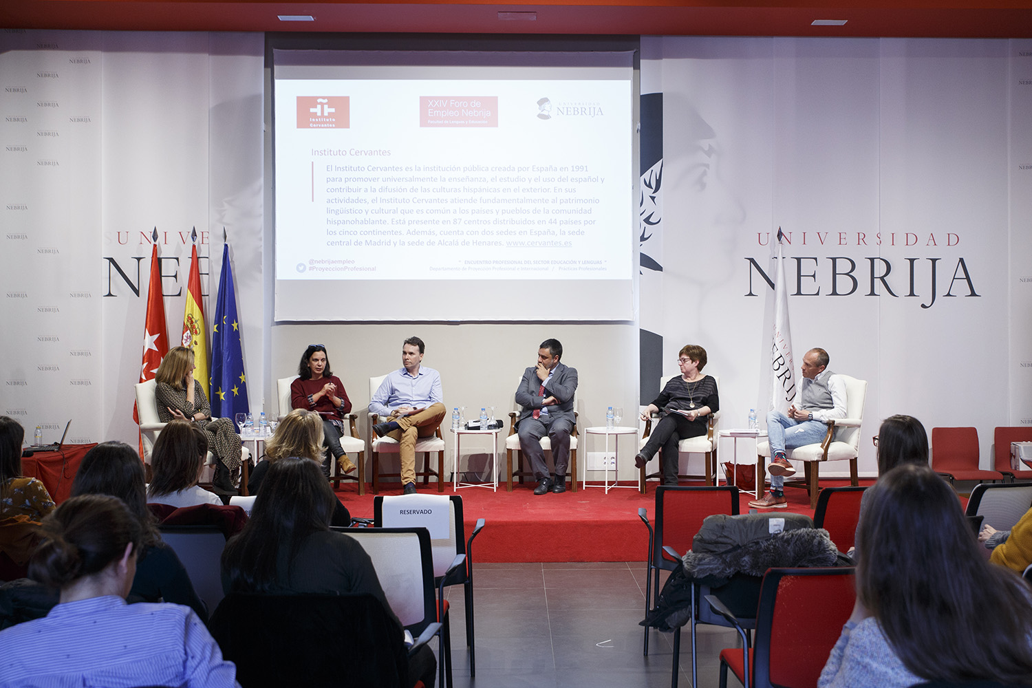 Maria Luisa Pérez vino en representación del Instituto Cervantes y explicó que la institución se dedica a “dar clases de español en todo el mundo y formación a profesores de español en España”. Cuenta con más de 1000 personas trabajando en todo el mundo, de las cuales 200 son profesores. La Universidad Nebrija cuenta con un acuerdo con el Instituto Cervantes mediante el cual los alumnos de los másteres en Didáctica del Español como Lengua Extranjera y en Lingüística Aplicada a la Enseñanza del Español como Lengua Extranjera pueden realizar prácticas en el Cervantes: “38 alumnos de Nebrija ya han hecho prácticas con nosotros”, dijo Pérez.