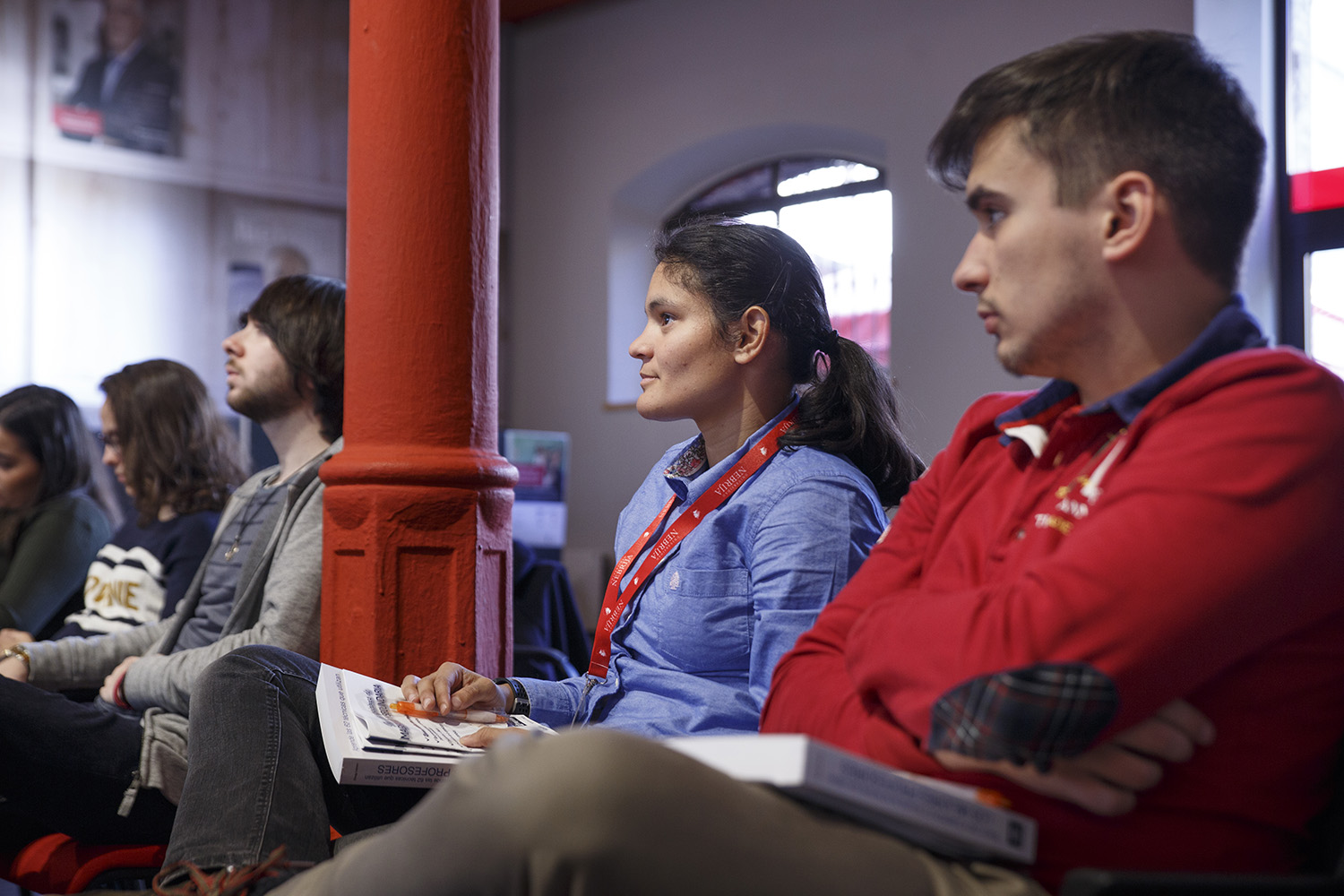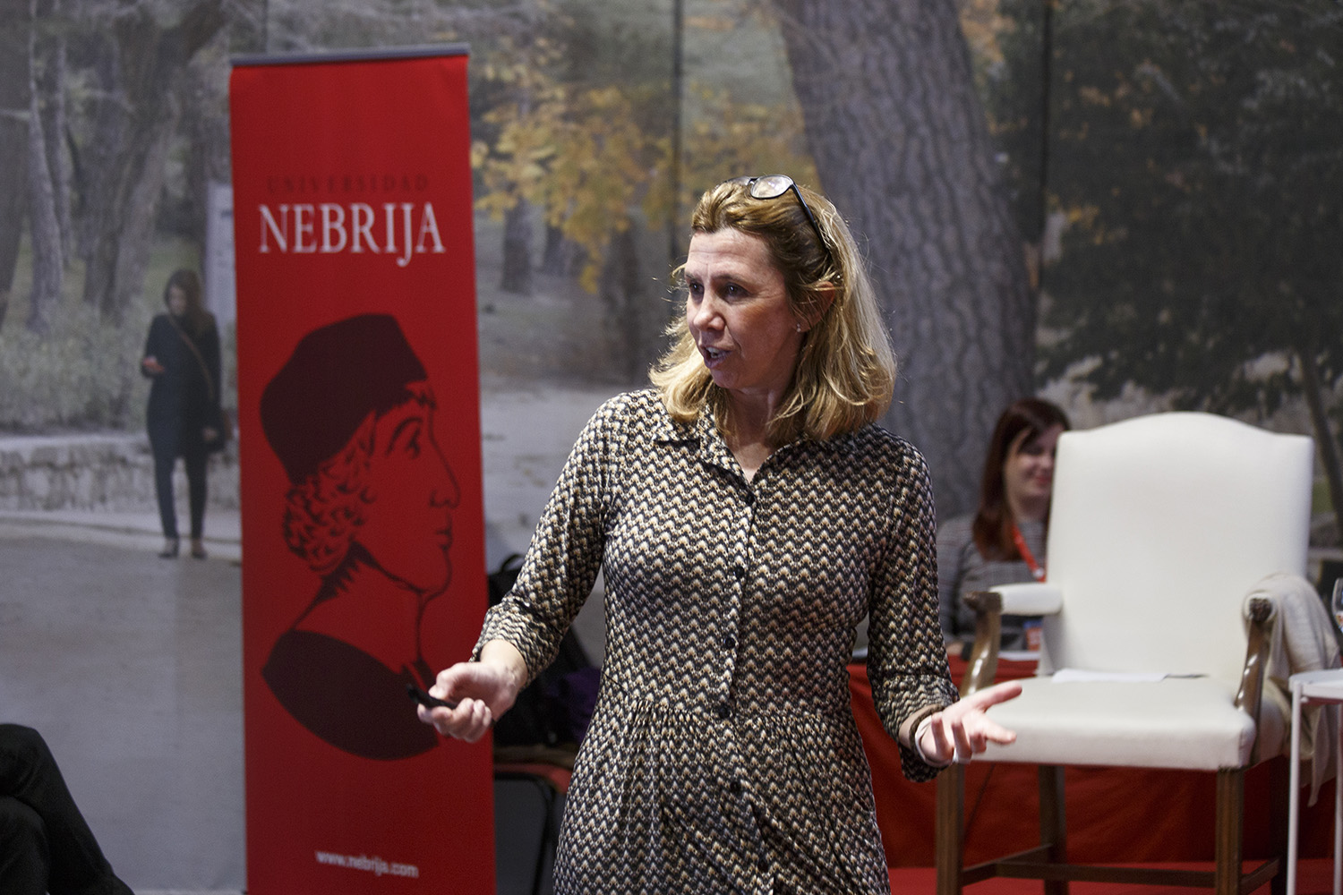 Pilar Elegido, directora de RRHH del British Council, explicó a los alumnos cómo funciona el British Council, sus centros, su colegio en España, y qué tipo de opciones laborales podrían tener en la institución que cuenta con más de 25.000 estudiantes en inglés, solo en España. Elegido aseguró que con “con la formación recibida en Nebrija todos podréis encontrar trabajo al terminar, hay muchas oportunidades”.