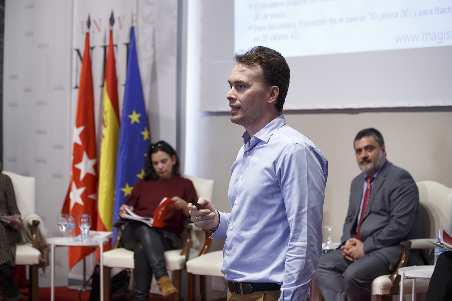 Desde Magister explicaron las claves para enfrentarse a unas oposiciones, que son la forma de acceso al sector público educativo, e hicieron hincapié en que es necesario “tener el objetivo muy claro, que te apoyo tu entorno más próximo en la decisión, planificar con antelación y organizar los temarios y tener determinación y capacidad de sacrificio”. Eduardo Dragan afirmó que “más del 70% de los profesores en España trabajan en el sector público”.