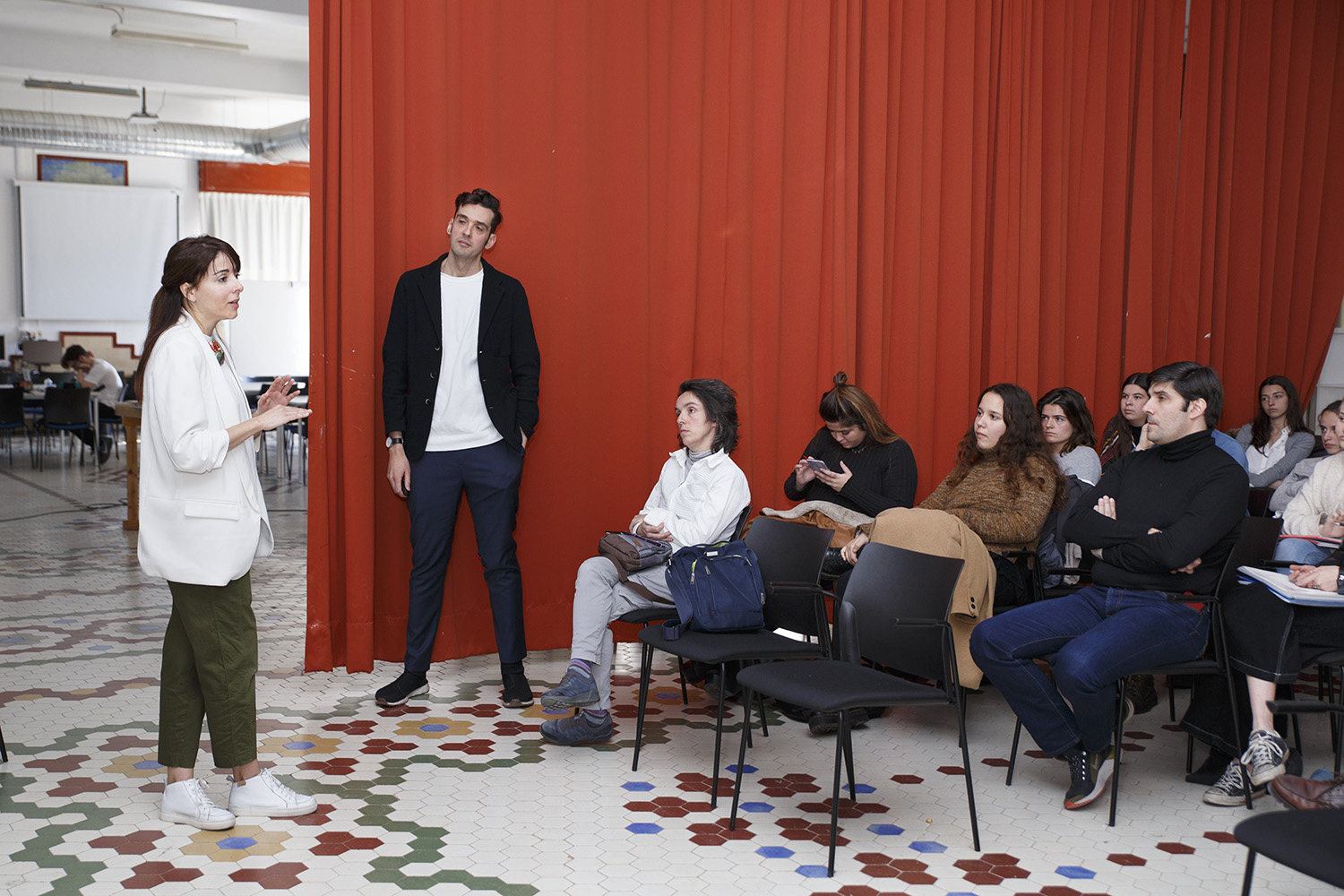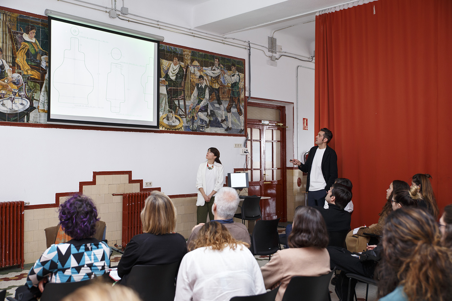 El valor de la artesanía fue otro de los aspectos sobre su trabajo que quisieron transmitir en la conferencia los fundadores del estudio madrileño. “Nuestro trabajo se basa en la artesanía. Trabajamos mano a mano con los artesanos y aprendemos mucho de ellos”, afirmó Marta Alonso, que también contó a los alumnos como la libertad que dejan a los artesanos les permite crear piezas que no sean idénticas entre sí. “El artesano tiene un patrón, pero cada pieza es única, distinta a las demás”, explicó la diseñadora. Habló también sobre la importancia que tiene la tecnología en sus creaciones y como “esa mezcla entre artesanía y tecnología es bastante mágica”. De hecho, un rasgo distintivo de sus piezas es que la tecnología se vea, que se aprecien “las tripas de las piezas”.