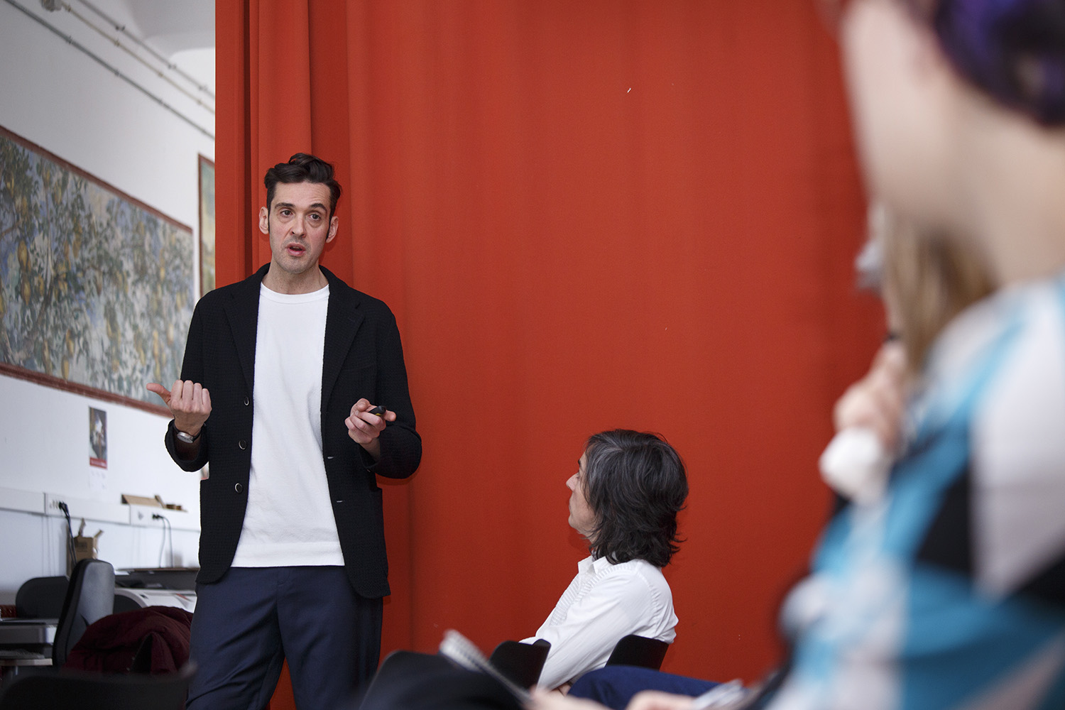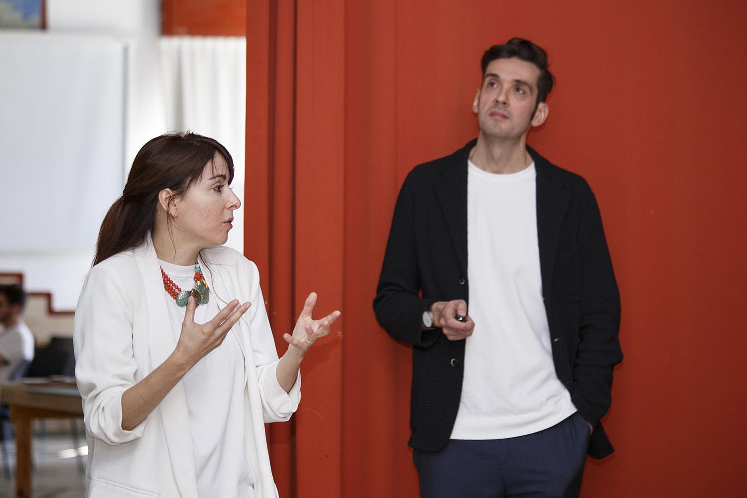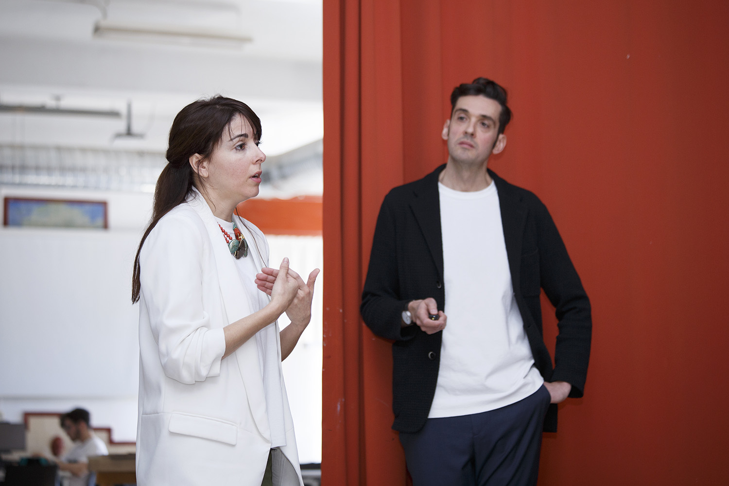Los arquitectos hablaron sobre el nacimiento de su estudio en el año 2013 y destacaron como punto de inflexión en su desarrollo la invitación que recibieron en 2015 para hacer una instalación artística relacionada con la comida en Villa Necchi Campiglio, con motivo de la EXPO de Milán sobre alimentación. Para esta ocasión crearon una instalación con vidrio soplado y gelatinas donde, al incidir luz proyectada, daba como resultado unas imágenes acuosas en el techo de la sala. También realizaron junto al Horno de San Onofre unos caramelos con la misma forma que los vidrios soplados, para que “la gente se pudiera comer la obra” y vincular así la experiencia visual con la gastronómica.