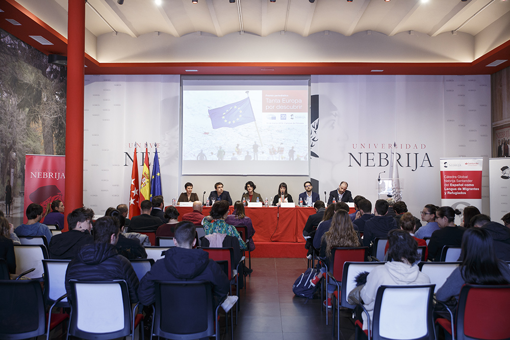 Con motivo de las próximas elecciones al Parlamento Europeo del 26 de mayo, la Universidad Nebrija, junto al periódico 20 Minutos y al propio Parlamento Europeo, ha puesto en marcha el concurso periodístico “Tanta Europa por descubrir”, presentado el martes 19 de marzo en el Campus de Princesa. Un certamen que busca fomentar el conocimiento entre los jóvenes sobre las políticas que se desarrollan desde la Unión Europea y concienciarles de la importancia de votar en los próximos comicios comunitarios.