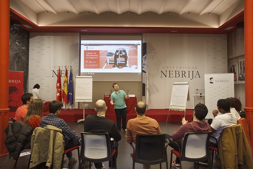Los antiguos alumnos de la Universidad Nebrija tuvieron ocasión de conocer el trabajo de Carlos Gil Escartín (antiguo alumno de Ingeniería Informática, 2006) coach certificado por ICF, experto en valores y consultor con más de 10 años de experiencia en consultoría de IT y de negocio, en un taller práctico enfocado a emprendedores que estén comenzando su aventura empresarial.