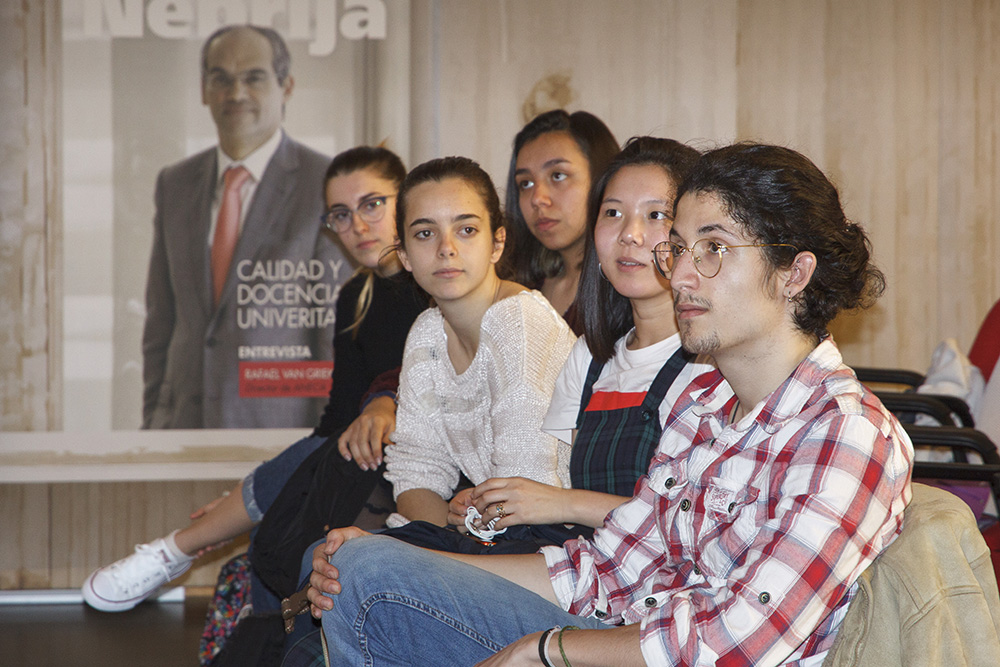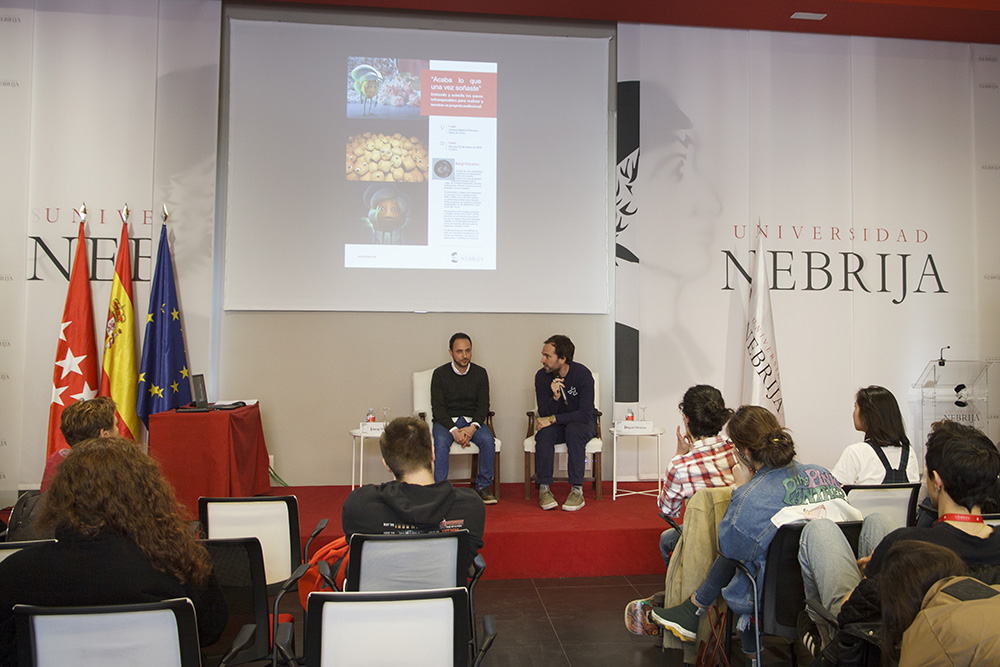 Por otro lado, Vizcaíno valoró muy positivamente la educación que se recibe en instituciones como la Universidad Nebrija, pero afirmó que “la experiencia es lo más importante, si queréis hacer cine, por mucho que estudiéis no sabréis hacerlo, tenéis que poneros a hacerlo” y animó a todos los asistentes a que olvidaran las excusas y que comenzaran a hacer cine aunque no hubieran terminado la carrera.