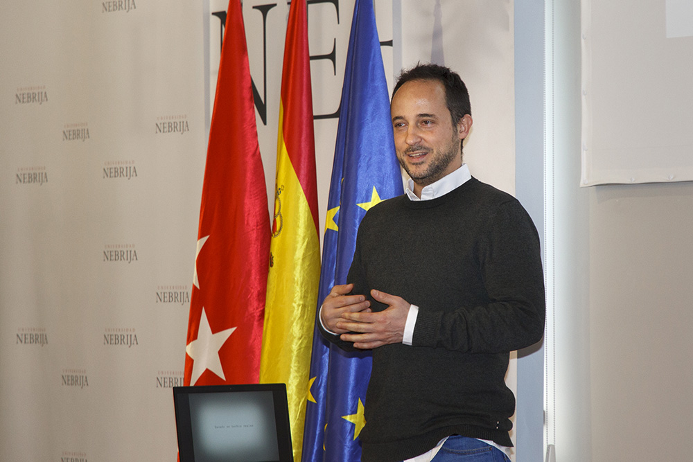 El director de cine Sergi Vizcaíno se describe como un contador de historias a través de sus imágenes y fue esa faceta la que quiso transmitir en una charla organizada por el grado de Diseño Digital y Multimedia para sus alumnos y los del grado de Comunicación Audiovisual en su visita a la Universidad Nebrija.