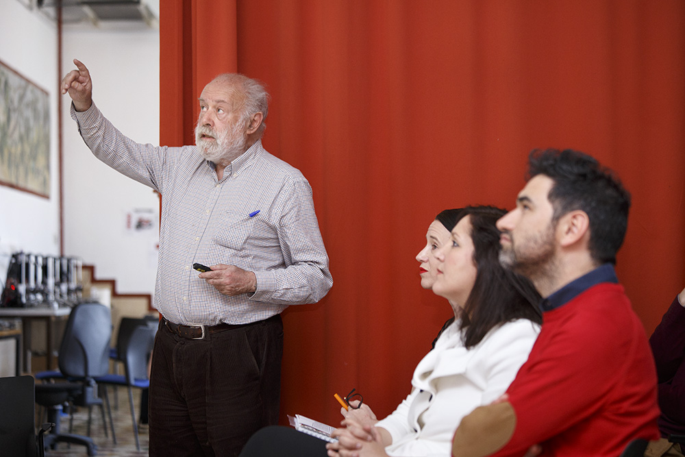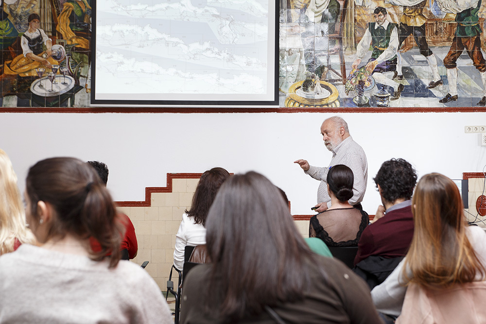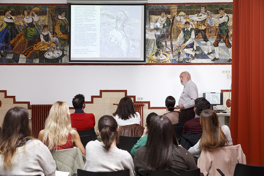 En el encuentro con los alumnos de Arquitectura dentro de la Semana de la Arquitectura y el Diseño Fernández‑Rañada explicó cómo se hizo el planteamiento territorial del litoral asturiano para proteger las costas y controlar la urbanización.