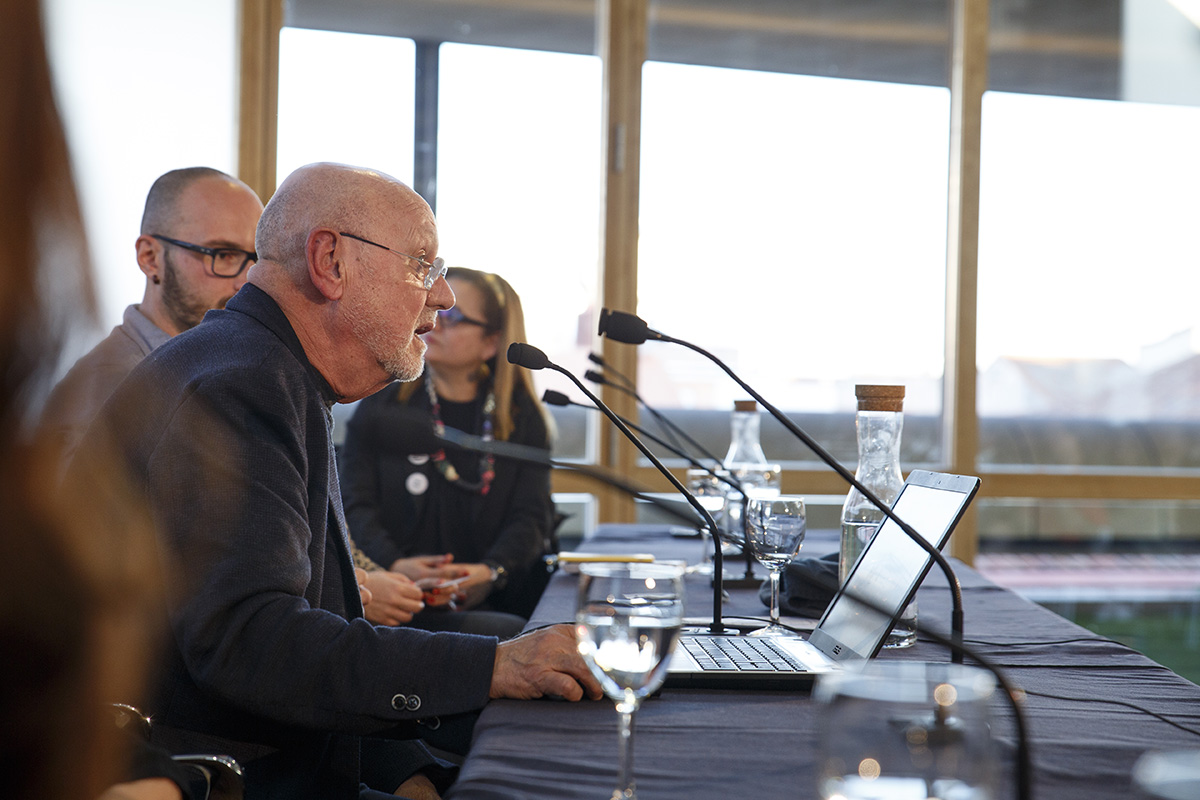 El diseñador Nacho Lavernia hizo un repaso por algunas de sus creaciones más destacadas de su larga trayectoria profesional, en la que ha recorrido todos los sectores económicos, abarcando las múltiples facetas del diseño y dando respuestas a una enorme variedad de clientes. El Premio Nacional de Diseño 2012 les dejó una frase del escritor cubano Ítalo Calvino: “La creatividad es como la mermelada: necesita una buena rebanada de pan para ser untada, sino se queda en nada”. Así, aconsejó a los alumnos que lo importante no es tener ideas, sino acompañarlas de conocimiento, trabajo, prueba, error,… para que cuando vayamos a presentárselas al cliente, “estamos seguros de que la mermelada va acompañada de una buena rebanada de pan”. También insistió en la necesidad de formarse, no solo durante los años de universidad, sino a lo largo de toda la vida. “La cultura es importantísima para poder diseñar. Sobre ella descansará vuestra creatividad”, destacó el diseñador.
