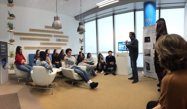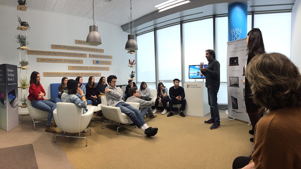 En dos turnos de mañana y tarde, nuestros estudiantes pudieron asistir a una aplicación práctica del uso de ‘Teams’, herramienta colaborativa para el desarrollo de trabajo en equipo (presencial o remoto) y conocer la potencia de Surface Studio 2, lo último en hardware de diseño y creatividad. Una oportunidad al alcance de pocos y que fascinó a nuestros jóvenes estudiantes, que salieron con el deseo de poder disfrutar de esta maravillosa herramienta para su trabajo diario.