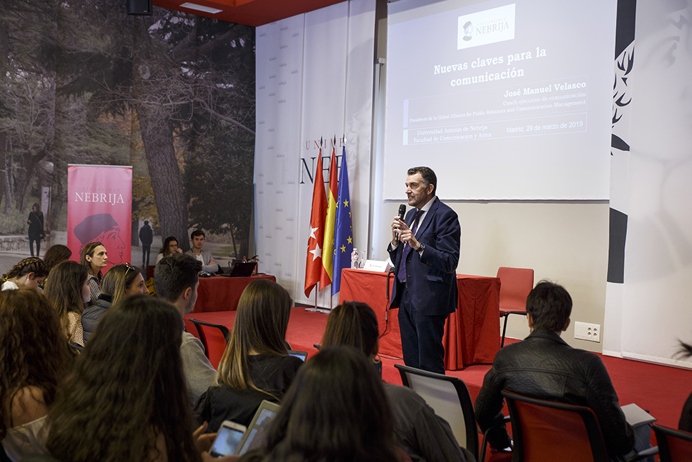 José Manuel Velasco, el presidente de la Global Alliance for Public Relations and Communication Management impartió una clase magistral sobre las claves de la comunicación corporativa y compartió con los alumnos del Grado en Comunicación Corporativa, Protocolo y Organización de Eventos.