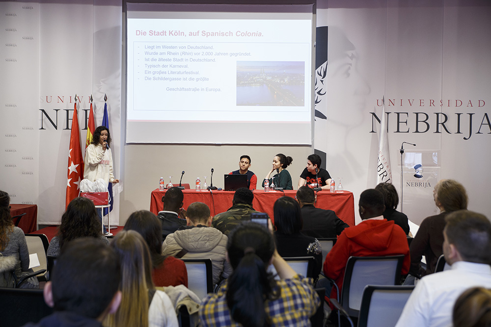 Para favorecer y concienciar a la comunidad universitaria de estos valores el Grado en Lenguas Modernas y del Instituto de Lenguas Modernas de la Universidad Nebrija organizó la XIX Aula Plurilingüe bajo el lema “Encuentro Pluricultural”. Un acto en el que los alumnos, organizados junto a sus profesores, hicieron una serie de presentaciones en torno a la diversidad lingüística y cultural como valor positivo en la sociedad del siglo XXI.