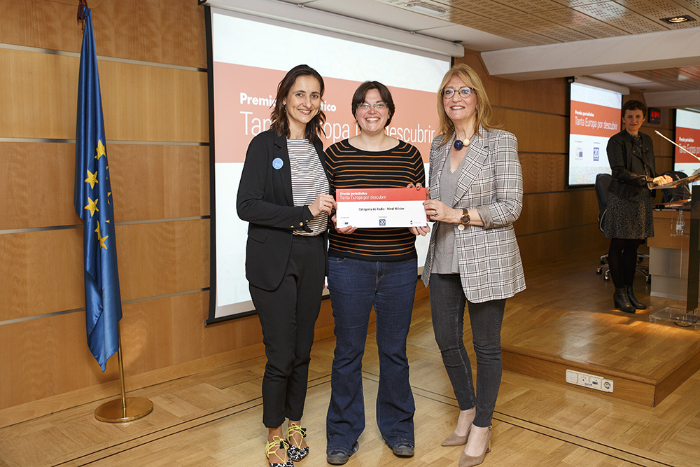 “Se lo merece. Su sueño es la radio”. Entre los aplausos y las felicitaciones que recibieron los alumnos ganadores del concurso “Tanta Europa por descubrir”, se escuchó esta frase. Probablemente dirigida a Enrique Somoza Jiménez, ganador de la categoría de Grado Radio, que no pudo acudir a recoger el premio por estar enfermo, pero que en realidad podía haber ido dirigida a cualquiera de todos los estudiantes que participaron, que dejaron el listón muy alto en este certamen con la calidad de sus trabajos.