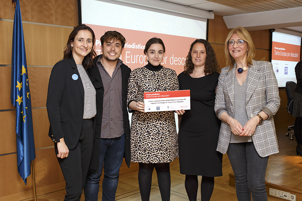 Podía haber sido para Arancha San Ginés, que consiguió el galardón de Máster Radio, con una pieza sobre las políticas de investigación e innovación de la Unión Europea; o para Rubén García y Lara Rábano, que se llevaron el premio con un video sobre la baja participación en las elecciones europeas en la categoría de Máster Televisión. Pero también la podrían haber dicho en referencia al trabajo sobre el Tratado de Dublín de Juan Ignacio Herruzo y María Andrades, ganadores de Grado Televisión, por su pieza , o sobre la pieza de las aulas de enlace, con la que Andy Tavarez y Valeria Álvarez consiguieron el premio especial Cátedra Global Nebrija-Santander del español como lengua de migrantes y refugiados.