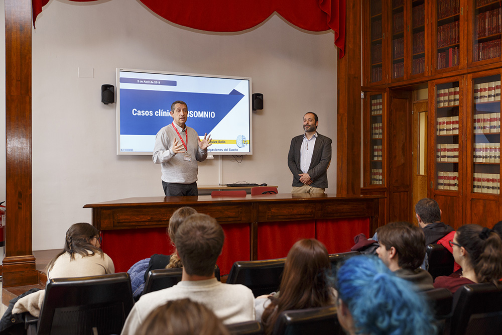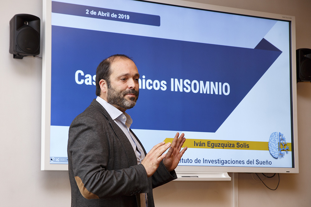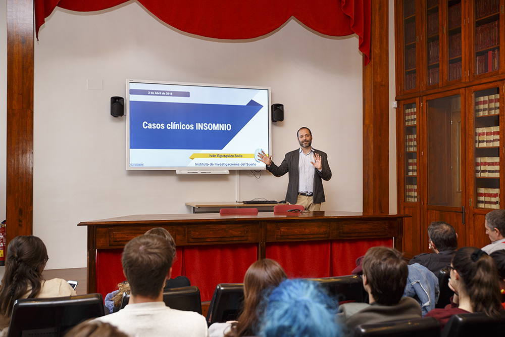 Iván Eguzquiza Solis, responsable de psicología del Instituto de Investigaciones del Sueño, compartió con los alumnos del Grado en Psicología algunos casos clínicos de insomnio crónico para mostrarles cómo diagnosticarlo y cómo tratarlo.