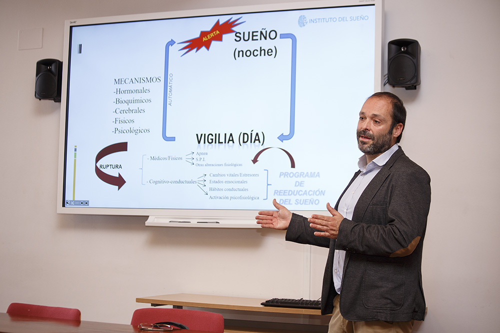 Eguzquiza explicó a los alumnos que “normalmente, el insomnio crónico comienza con un episodio traumático y se mantiene en el tiempo, es decir, que el inicio y la continuación vienen por motivos distintos”. El causante puede ser también algún tipo de problema médico como las apneas, el sonambulismo, la falta de melatonina…, pero también puede deberse a otro tipo de problemas como personales, preocupación por el trabajo…