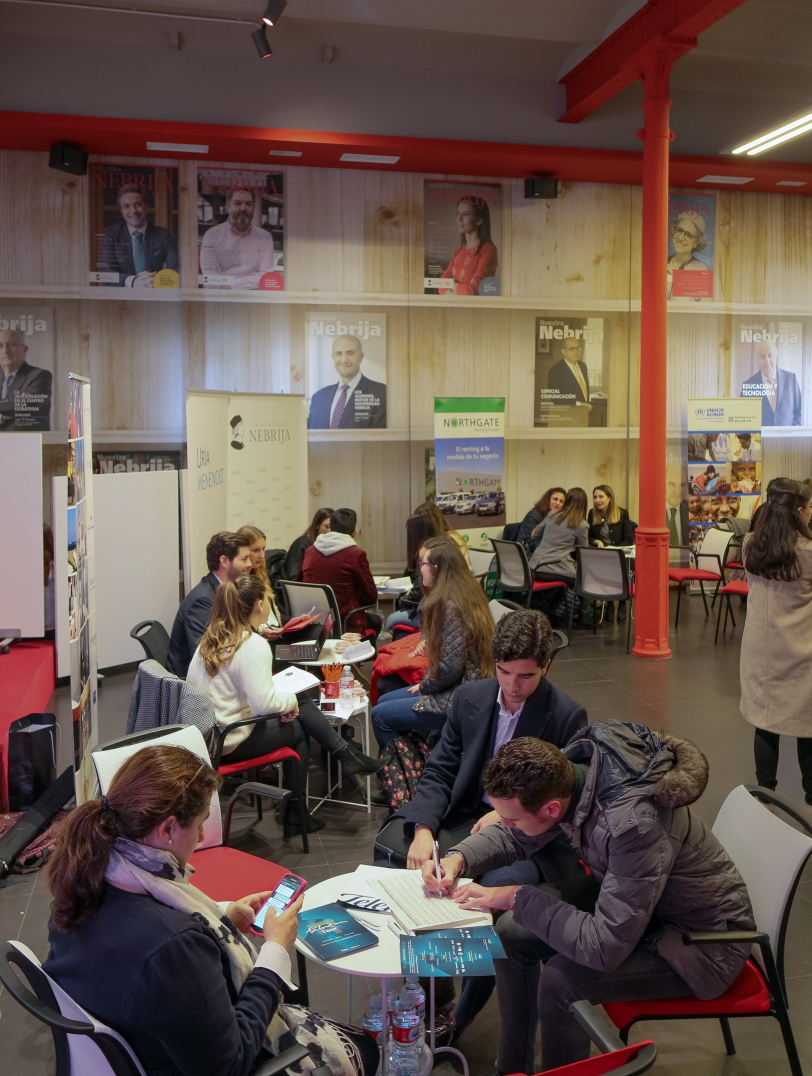 La Universidad Nebrija tiene como uno de sus principales objetivos la plena empleabilidad de sus alumnos y para ello el fomento de las prácticas en empresas líderes en cada sector es vital para la Universidad. Los alumnos tienen posibilidad de comenzar a conocer el mundo profesional desde la bolsa de prácticas que ofrece la Universidad y así poder saber hacia qué área quieren encaminarse cuando terminen su formación.