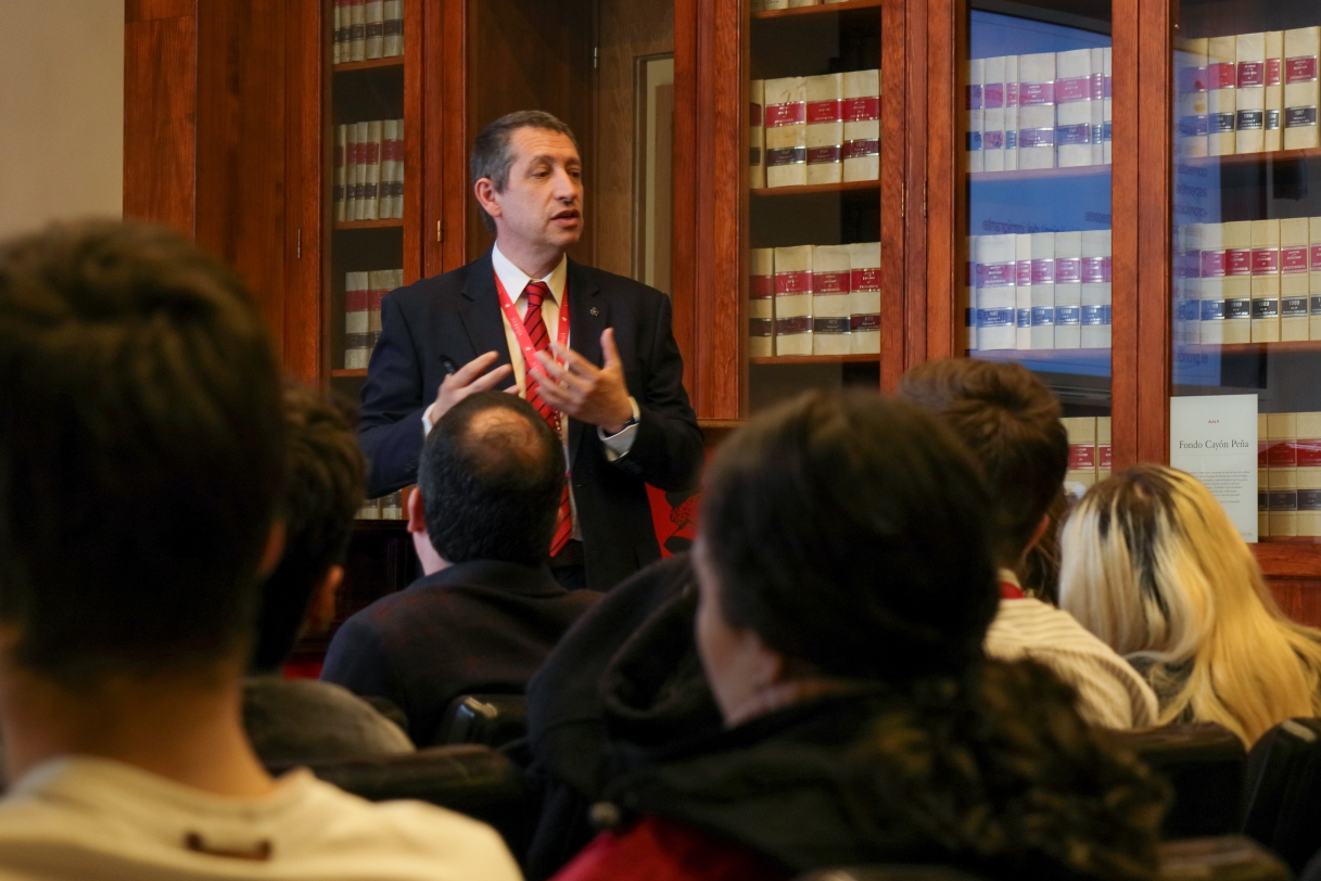 “La guerra y la seguridad han sido siempre preocupaciones en el horizonte de la humanidad”, destacó Álvaro Bustinduy, vicerrector de Investigación de la Universidad, que habló en la inauguración del encuentro sobre la necesidad de analizar las características de los nuevos conflictos y repensar algunos conceptos de derecho humanitario. Temas sobre los que también insistió Carlos Espaliú, investigar principal del Grupo, que hizo hincapié en el importante papel que tiene la investigación para aportar luz sobre estas cuestiones: “Es misión de las universidades plantearse los conflictos más importantes de cada momento histórico. Y la migración es uno de ellos. No hay más que pensar en los cientos miles de personas que cada año intentan llegar a Europa, y en todos los que han perdido la vida en el camino”.