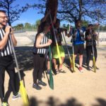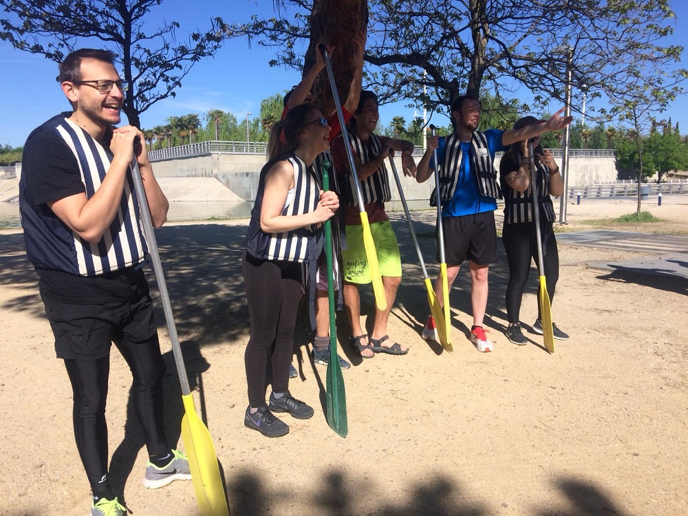 El primer contacto con el agua fue a través de canoas grupales. Aquí nuestros alumnos pusieron a prueba, no sólo su coordinación y resistencia, sino también el trabajo en equipo. Tras unos pequeños ejercicios de calentamiento y el tiempo suficiente de toma de contacto, arrancó la prueba que enfrentaría al equipo ”guaca-mole” contra “piruleta”. El recorrido de un kilómetro sobre la lámina de agua tenía su punto crítico en la vuelta y aquí “piruleta” tomó la delantera para alzarse con el primer punto de la jornada.