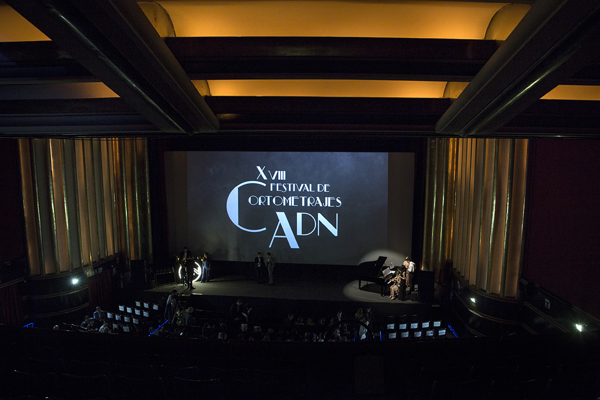 El escenario del cine Capitol de Gran Vía se convirtió este jueves 9 de mayo en un glamuroso club de los años dorados de Hollywood para celebrar el XVIII Festival de Cortometrajes AdN. Las notas de Volver, en la voz del pianista, rasgaron el silencio de una sala de cine abarrotada para dar comienzo a una noche mágica que rindió homenaje al séptimo arte. El cine y la música fueron los protagonistas de esta gala, presentada por Nicolás Grijalba, director del Grado en Comunicación Audiovisual, que reflejó la cantera de grandes cineastas que cada año se forman en la Facultad de Comunicación y Artes de la Universidad Nebrija.