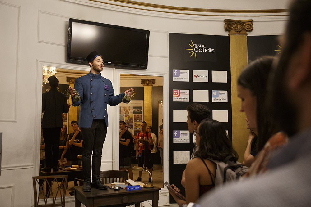 Así, la primera escena introductoria al Hotel Europa tiene lugar en el hall del teatro con el botones del hotel, interpretado por Mario del Campo con mucha gracia, incluso imitando el acento francés en su actuación.