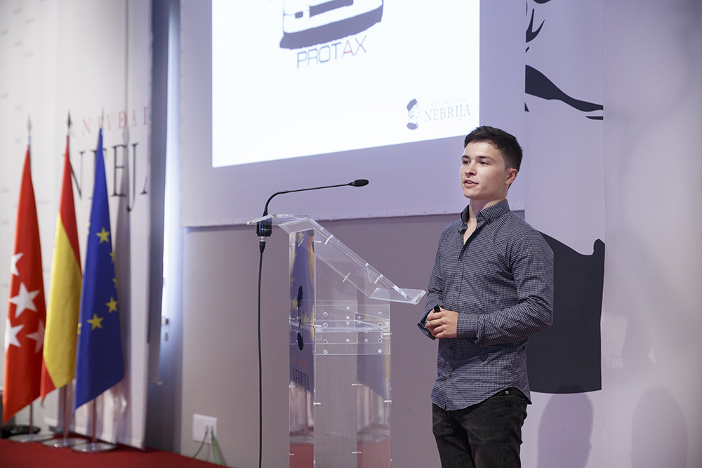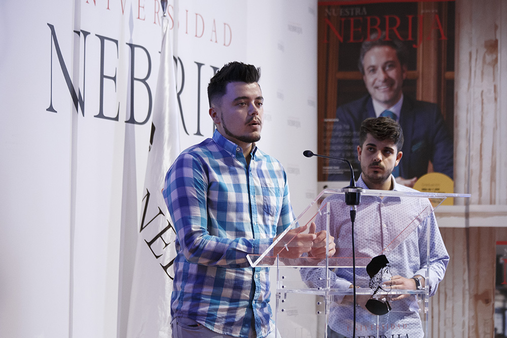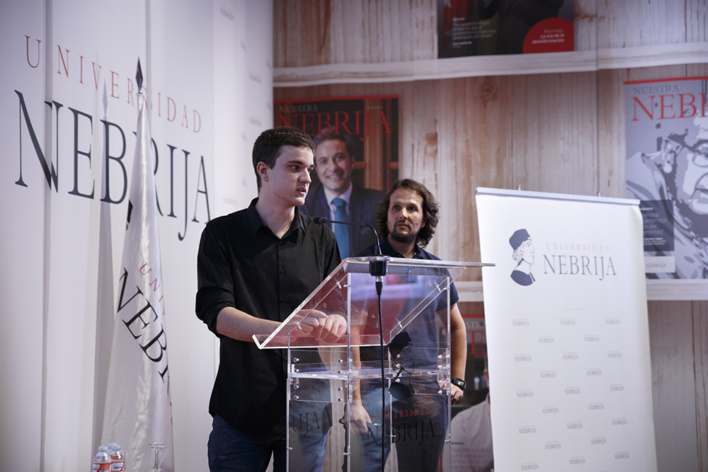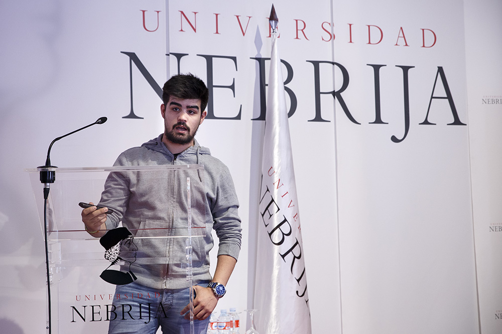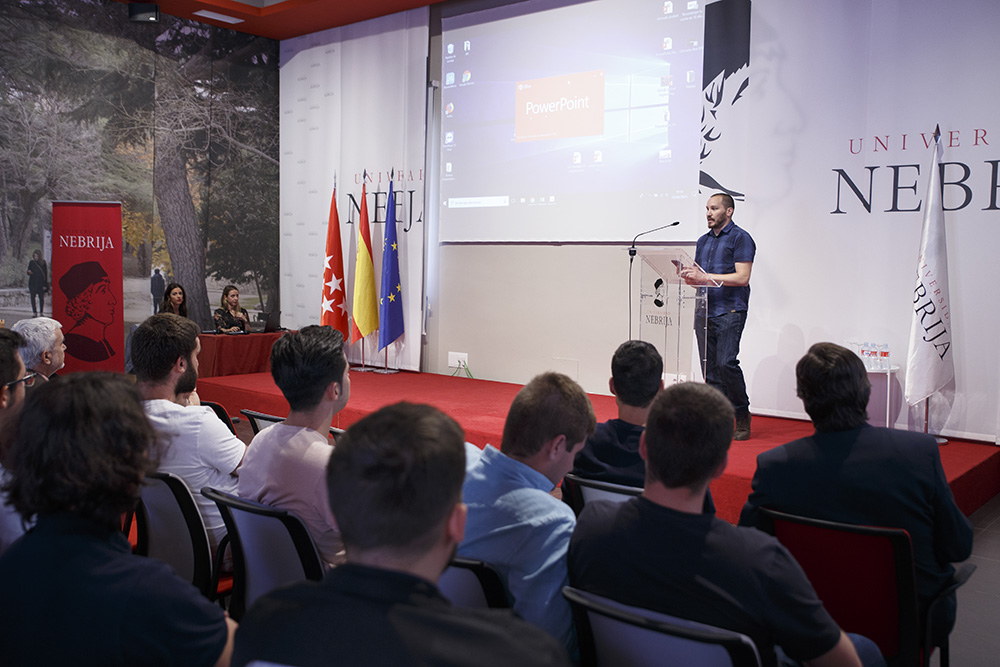Juan García y Jose Serrat explicaron el proyecto Nebrija Power Wheel. Los integrantes de este grupo han diseñado y están montando una moto eléctrica bajo el nombre del equipo para competir en la competición bianual MotoStudent de Alcañiz.
