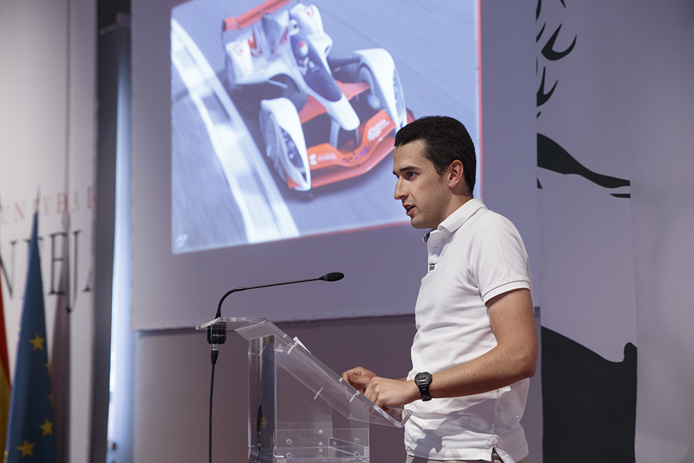 David González explicó el funcionamiento del proyecto Formula Student. Consiste en la creación de un equipo en miniatura de Fórmula 1, “desde el coche hasta el equipo que hay detrás, de mecánicos hasta marketing”. Este proyecto ha comenzado este curso formando el equipo, objetivo prioritario para comenzar a montar el coche. De toda la experiencia, González destacó la importancia de aprender a montar el coche porque “de los errores comentados también se aprende”. El momento más importante del curso fue “llegar a arranchar el coche, fue muy emocionante y estábamos muy nerviosos”.