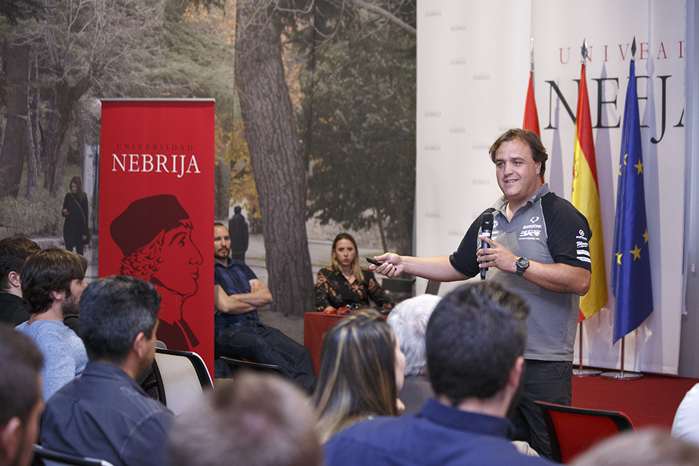 Alberto Lindon presentó el Nebrija Virtual Engineering, un proyecto que ha comenzado este año y que consiste en la creación de una máquina para competir en un entorno virtual “que ya ha sido calificada como disciplina oficial del motor”, explicó Lindon.