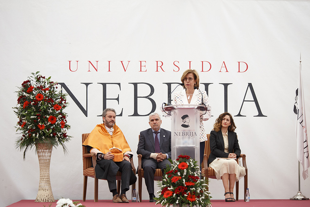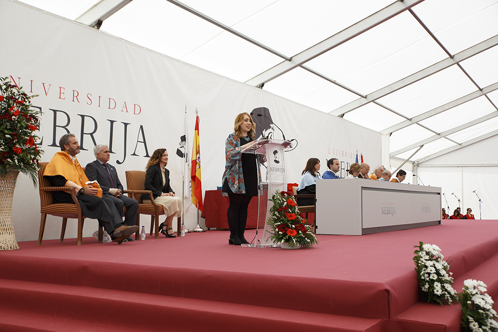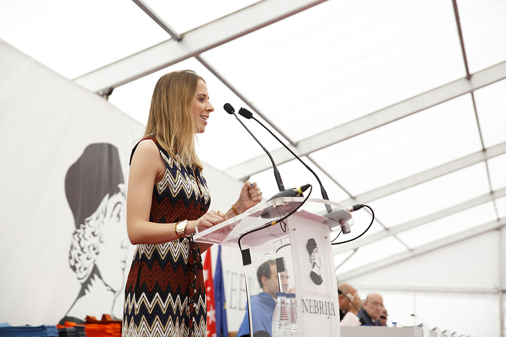 Rocío Jareño, alumna del Máster en Prevención de Riesgos Laborales online hizo hincapié en la labor de los docentes y afirmó haber encontrado en Nebrija “una segunda casa”. Se dirigió a sus compañeros de promoción convencida de que están listos para hacer del mundo un sitio mejor y les animó a ponerse a ello: “El futuro está en nuestras manos”.