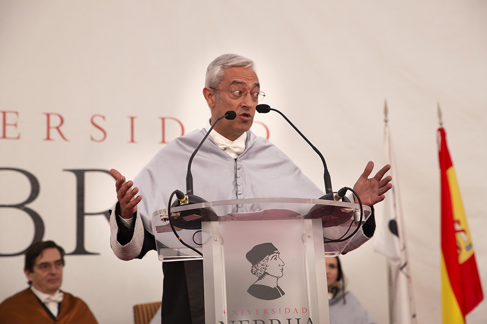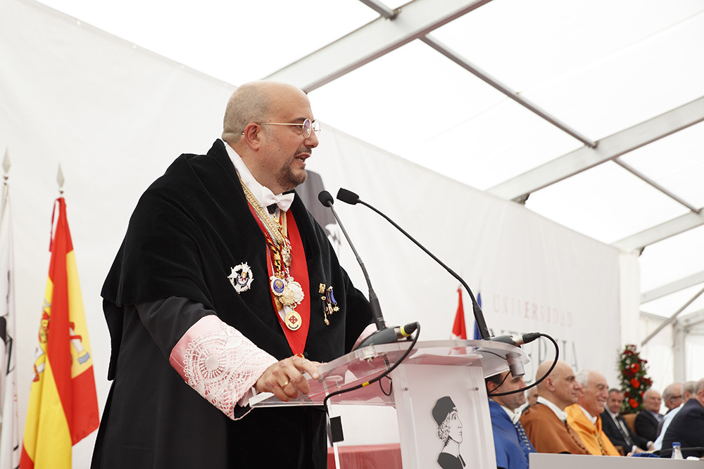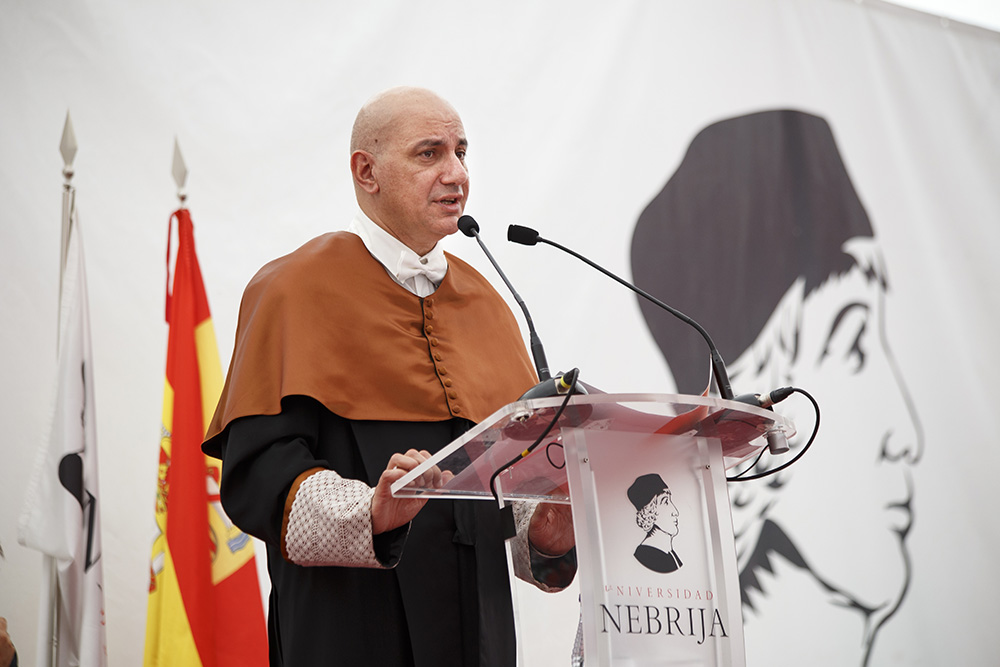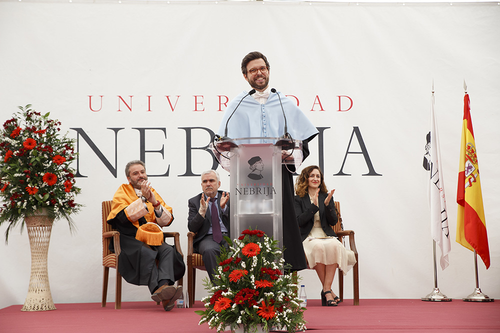 El profesor de la Facultad de Lenguas y Educación, Alfonso Sánchez-Moya, defendió la formación y el papel de la universidad en la vida: “cada día es una nueva oportunidad para seguir creciendo, conociendo y explorando”. Finalizó su intervención animando a los alumnos a “vivir intensamente todo lo que está por venir”.