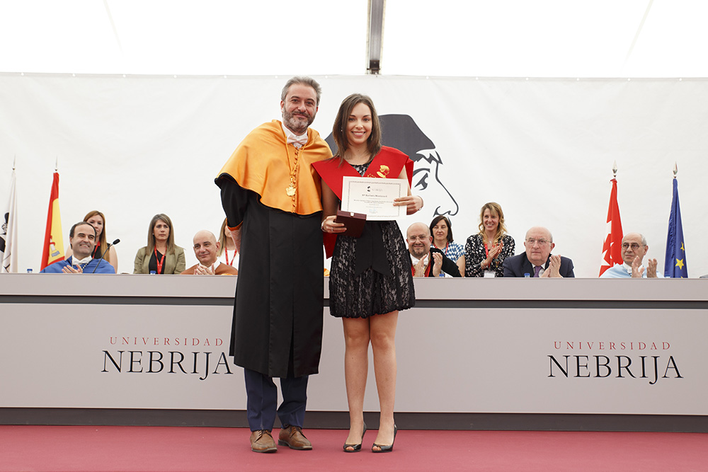 La alumna de la Facultad de Lenguas y Educación, Miáo Miào fue la encargada de cerrar la etapa de los alumnos de máster destacando el enriquecimiento cultural que la Universidad Nebrija les ha brindado: “La diversidad de los alumnos que hay, procedentes de diferentes continentes, ha permitido el intercambio cultural”. Además, Miáo Miào también valoró el trabajo duro y el respeto por el trabajo de sus compañeros porque “a la cima se llega superándose a uno mismo, no a los demás”.