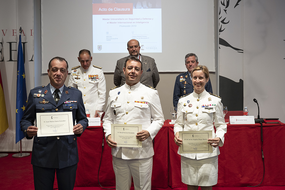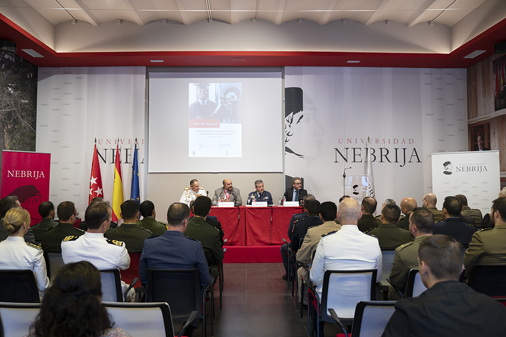 La Universidad Nebrija acogió el miércoles 26 de junio la clausura del Máster Universitario en Seguridad y Defensa y del Máster Internacional en Inteligencia, que contó con la participación de Francisco de Paula Bisbal Pons, director de la Escuela Superior de las Fuerzas Armadas, y Rafael Sánchez Ortega, director del CESEDEN.