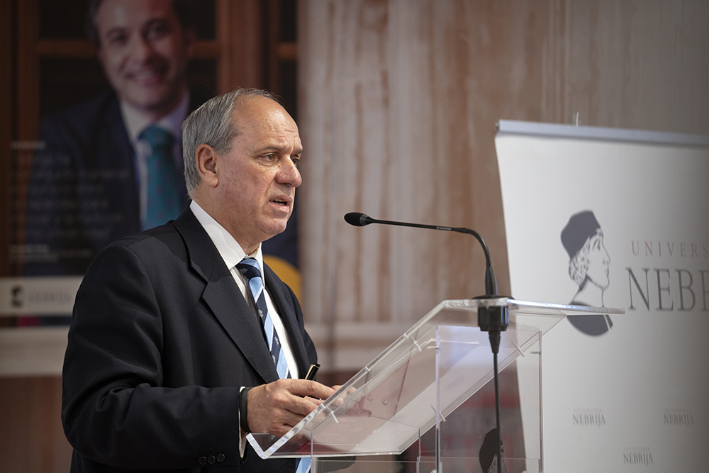 Juan Cayón, rector de la Universidad, dio la bienvenida a los alumnos de ambas titulaciones con una intervención en la que habló sobre la historia del Campus de Madrid-Princesa, donde se celebró el acto. Este singular edificio albergó durante décadas el Archivo Histórico Militar y el Instituto de Historia y Cultura Militar y fue el primer espacio donde el ejército español sustituyó los caballos por vehículos a motor. “Es un orgullo verles graduándose. Me agradaría mucho se fueran de Nebrija pensando que esta es su universidad, a la que siempre pueden volver”, afirmó el rector.